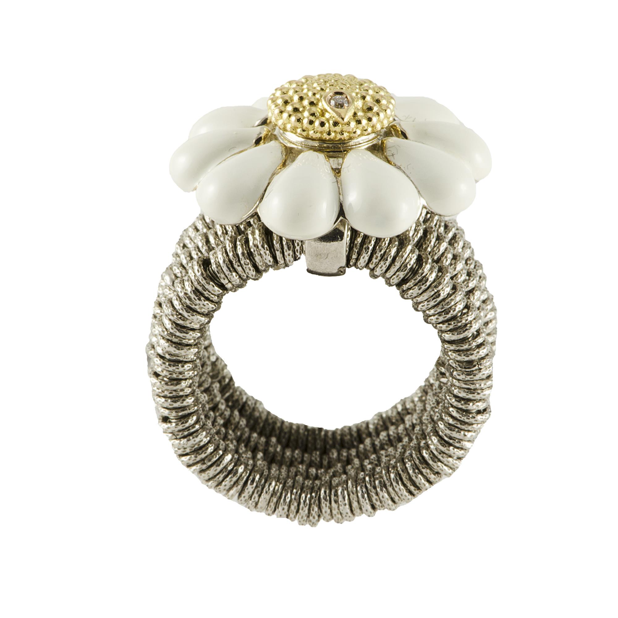 Anello Roberto Demeglio in argento, margherita con smalto bianco e diamante 0,01 carati, misura 13