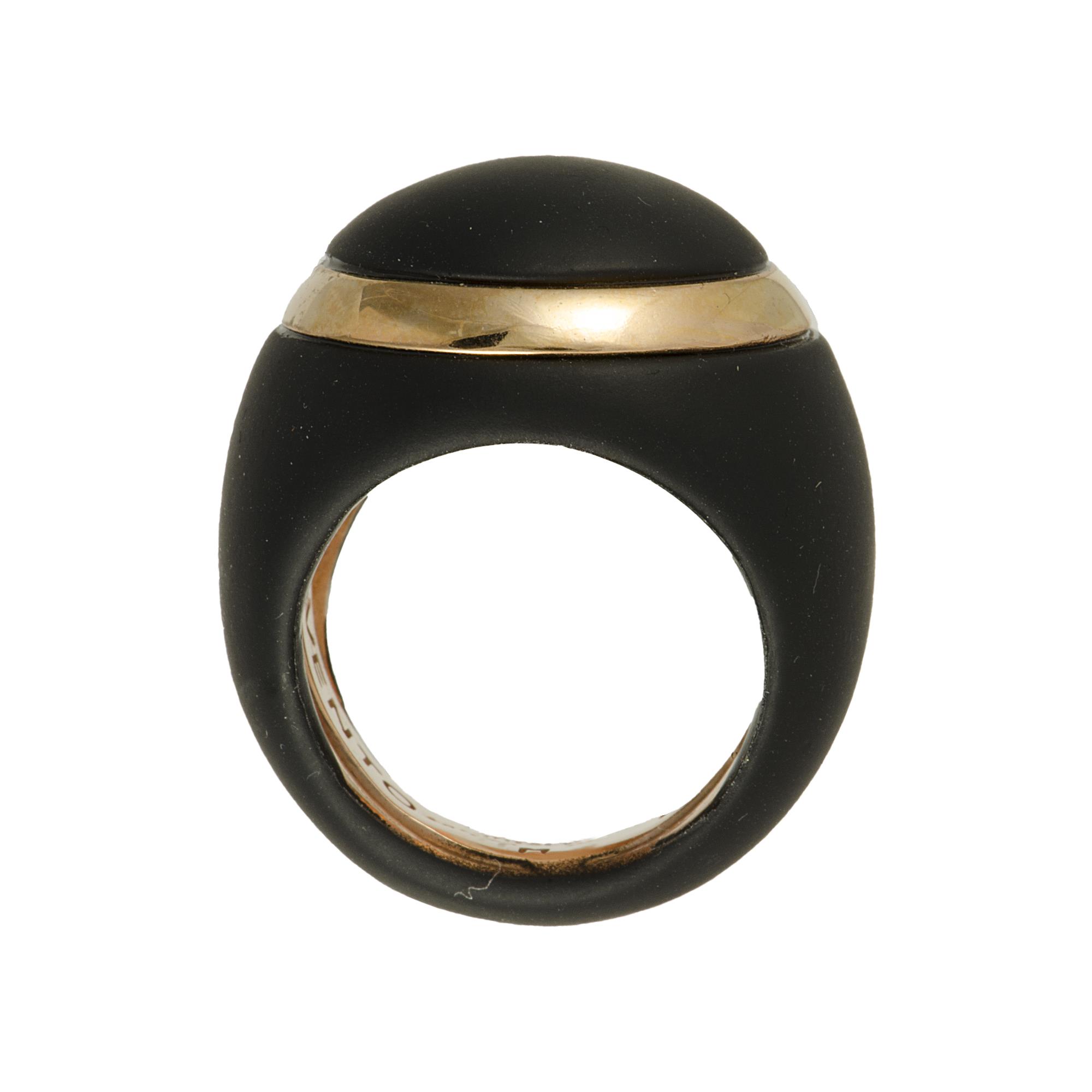 Anello Pesavento, fascia in argento con centrale tondo e riverstimento soft touch nero