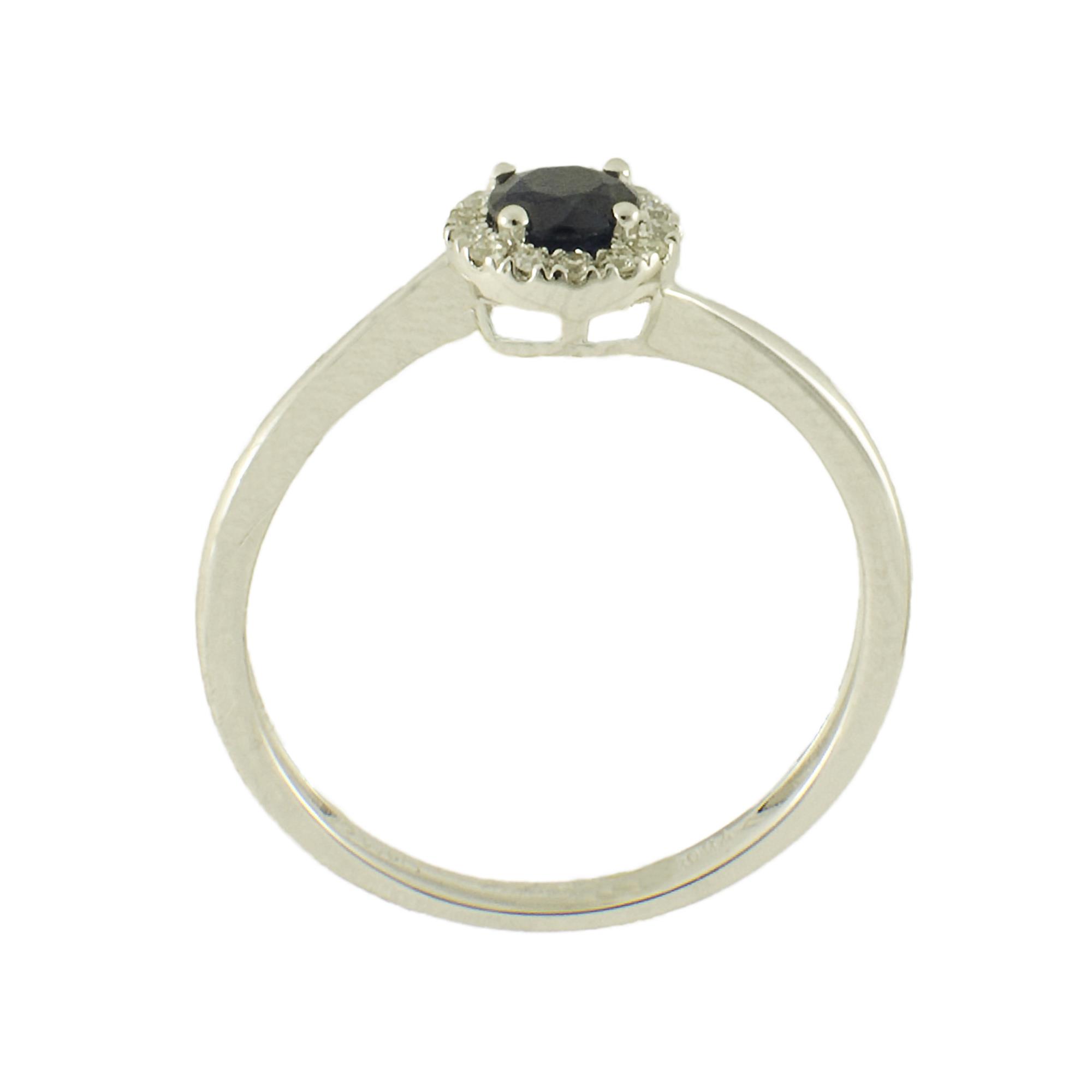 Anello Gioielli di Margherita in oro bianco con zaffiro centrale a forma circolare 0,32 carati e diamanti 0,07 carati, misura 13