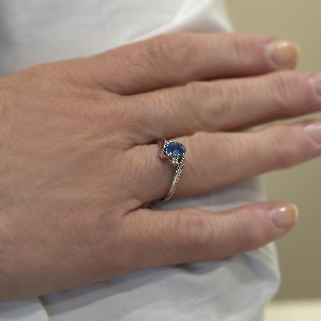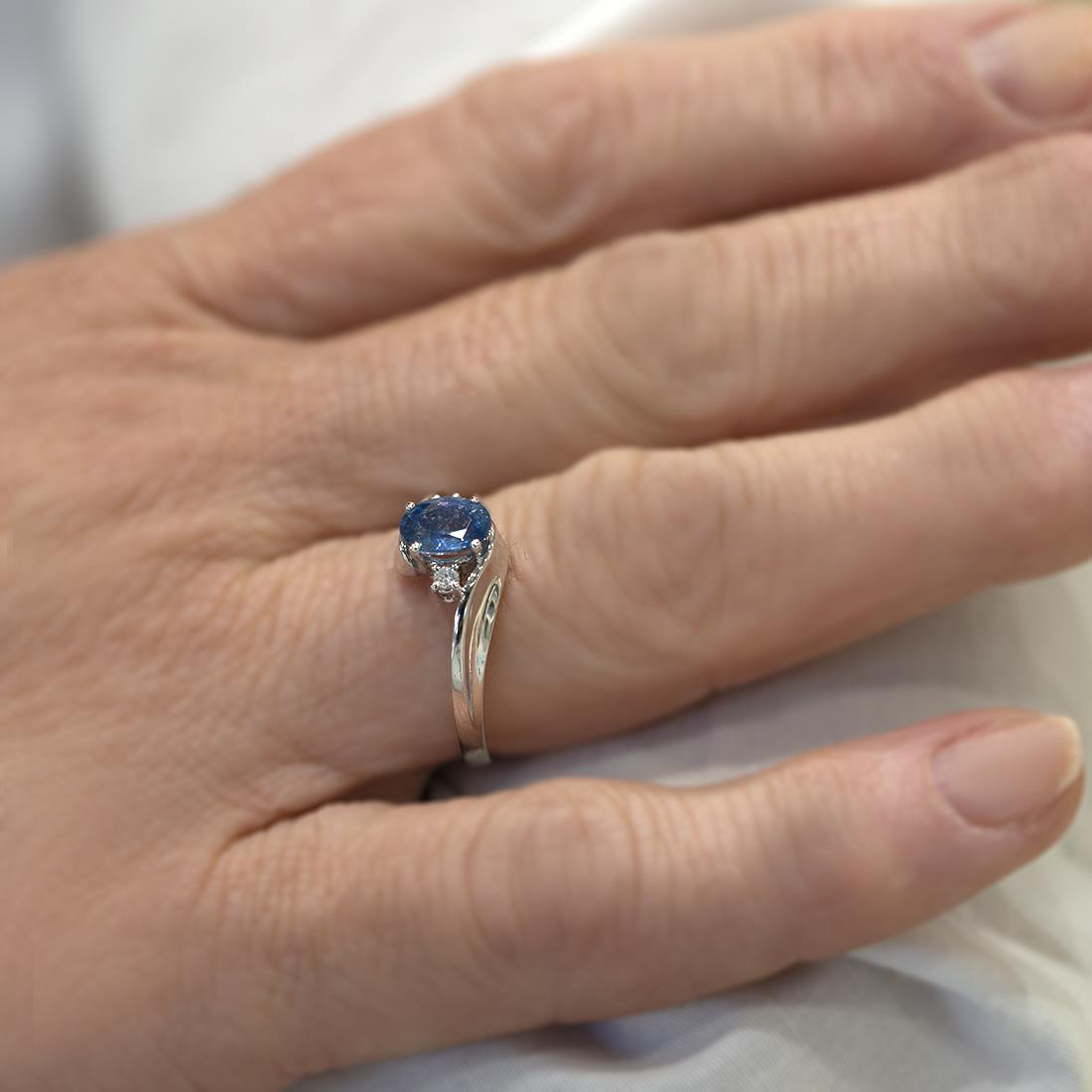 ANELLO IN ORO BIANCO CON DIAMANTI E ZAFFIRO ct. 1,00