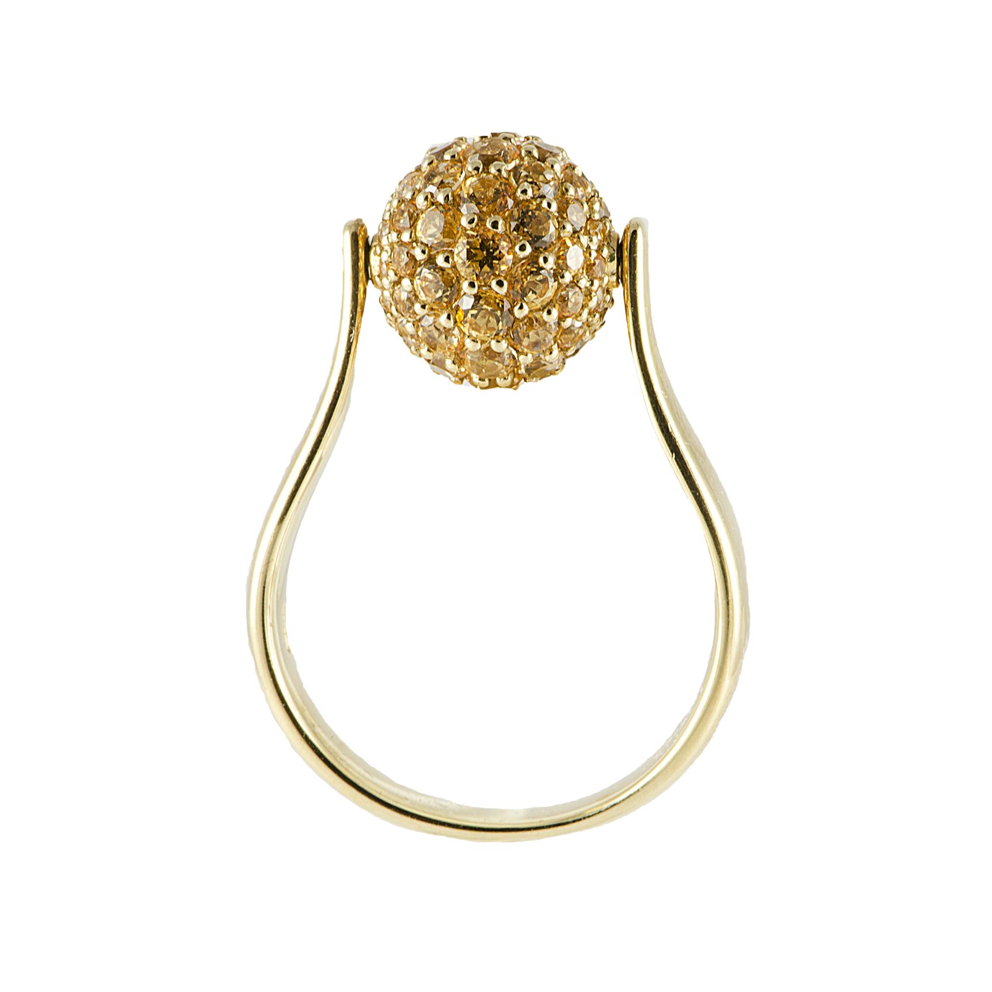 Anello Roberto Demeglio in oro giallo 9 kt, sfera 10 mm con topazi gialli, misura 13