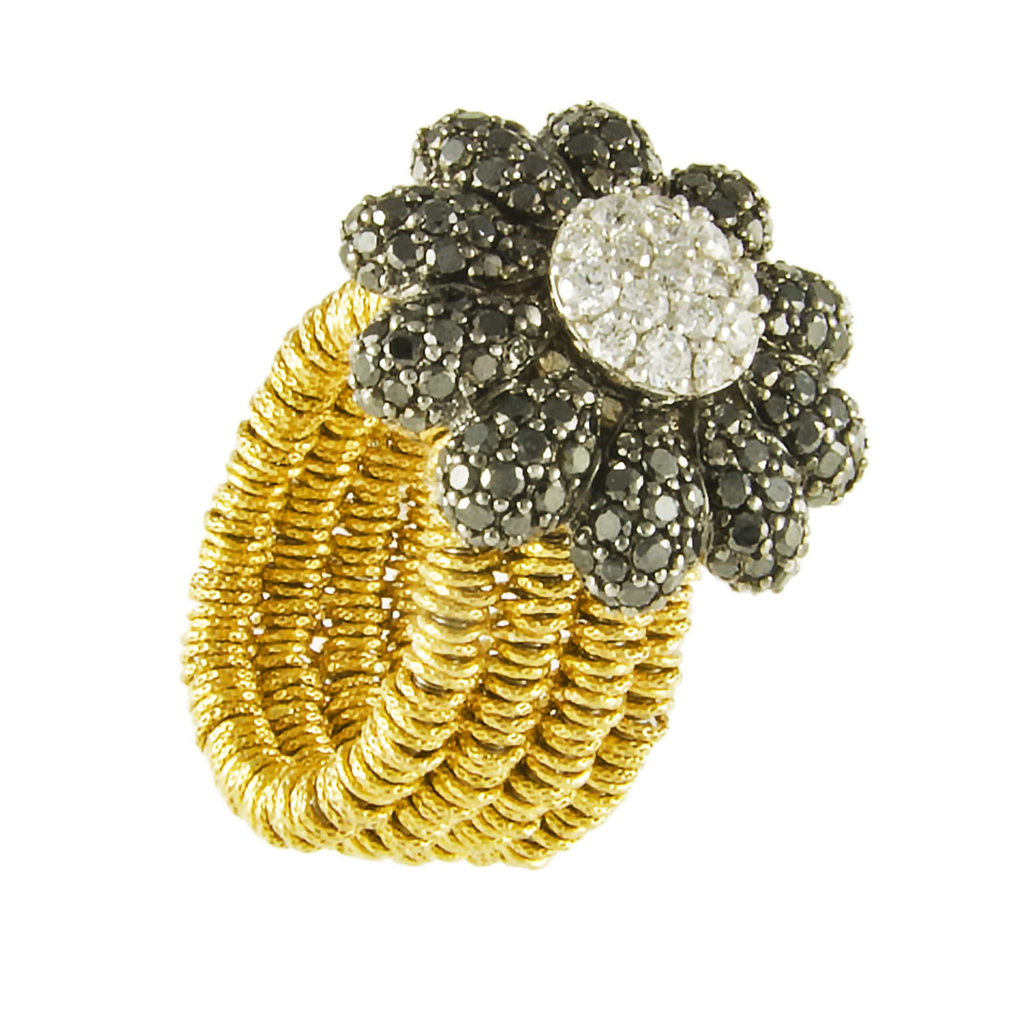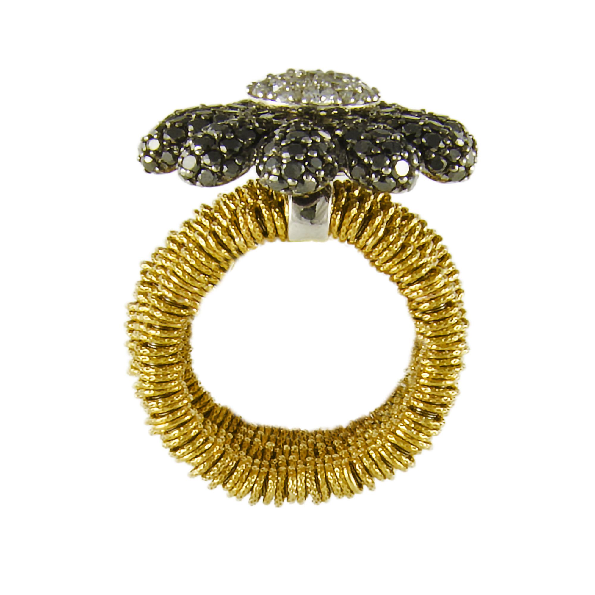 Anello Demeglio in oro rosa modello Joy con margherita, è composto da diamanti neri e bianchi 0,50 carati, misura 13 variabile