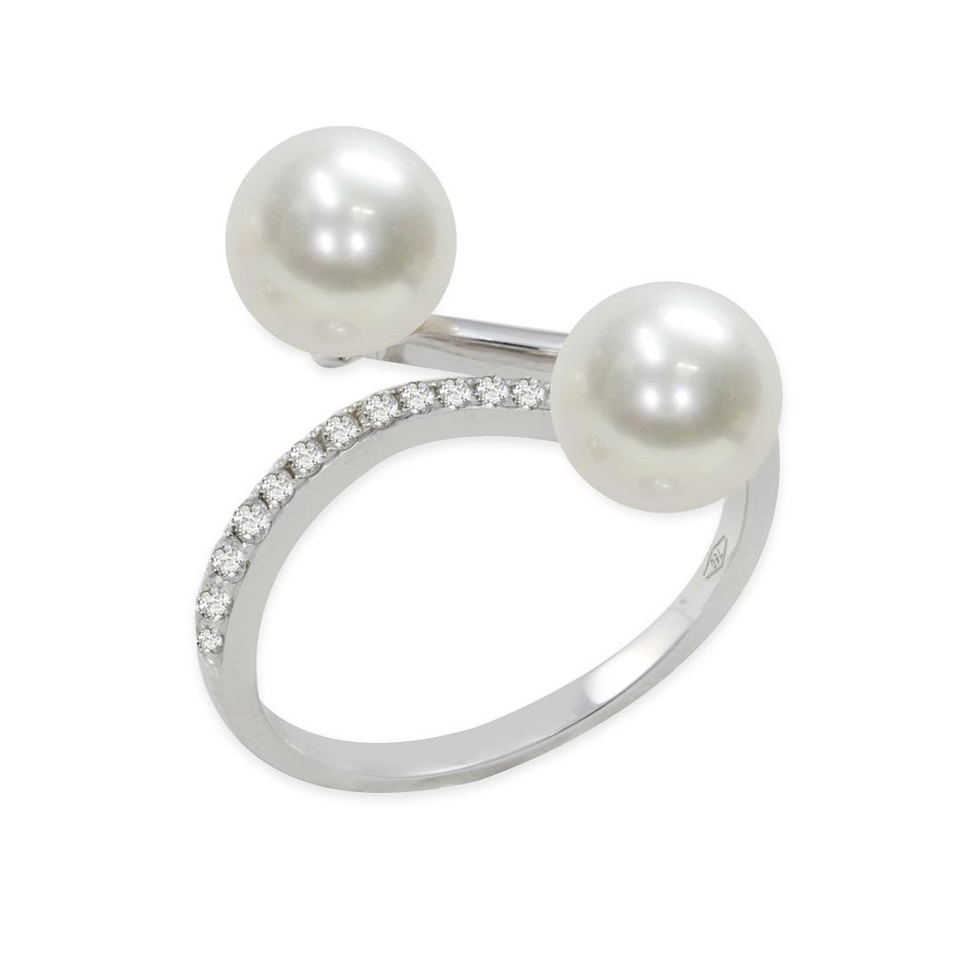 Mayumi ring in white gold with diamonds ct. 0.10 and Akoya pearls diameter 7-7.5mm