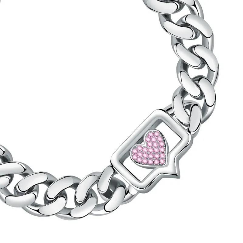 Chiara Ferragni bracelet Bossy Chain collection in rhodium plated metal with pink zircons size 16.5-19.5cm