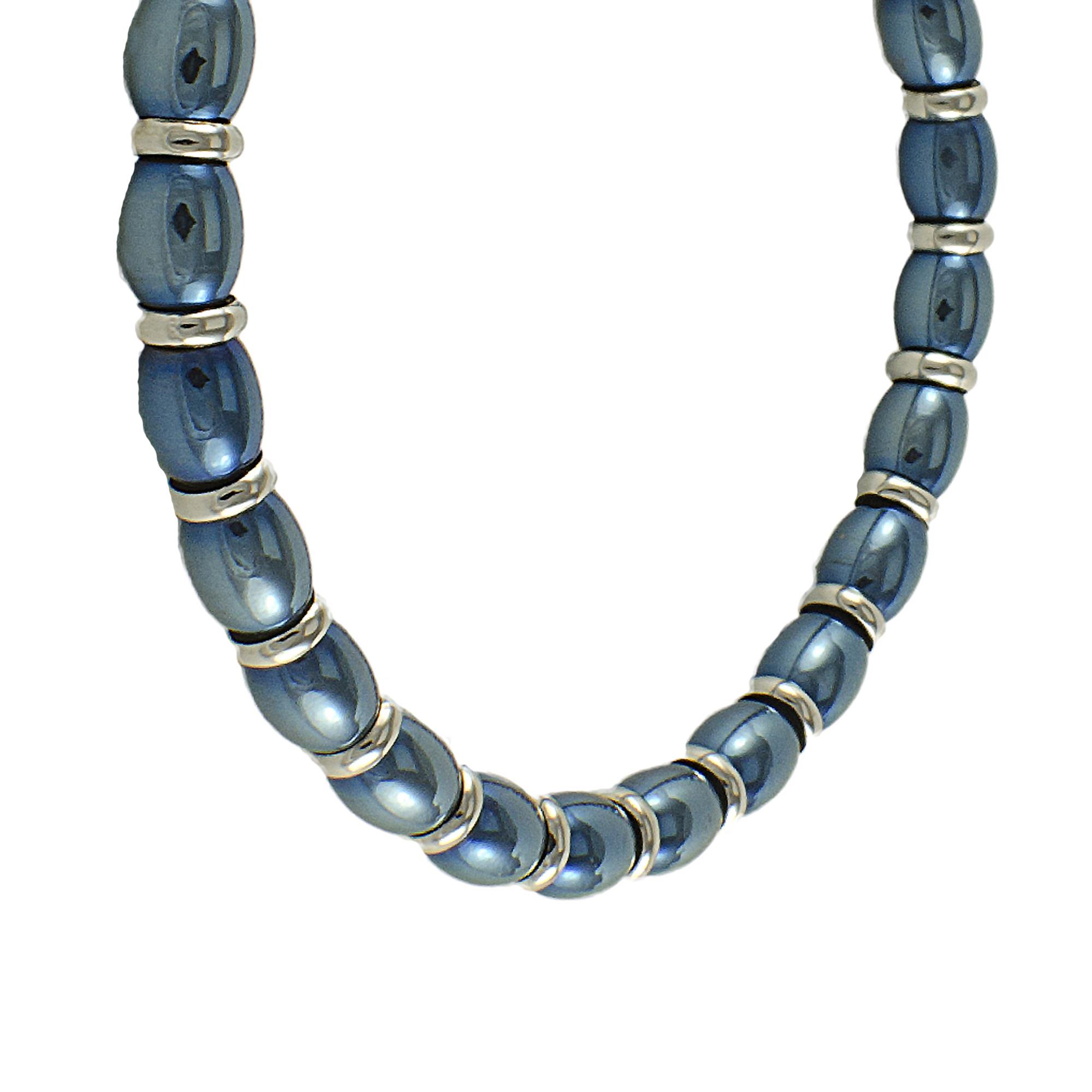 COLLANA IN ACCIAIO BLU E ORO BIANCO CM 40