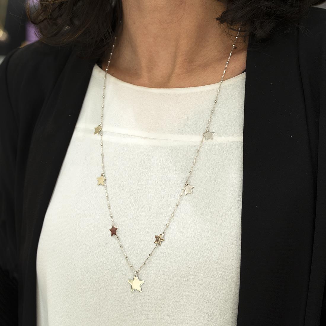 Collana Oro&Co design con stelline in argento 925. Lunghezza 66 cm