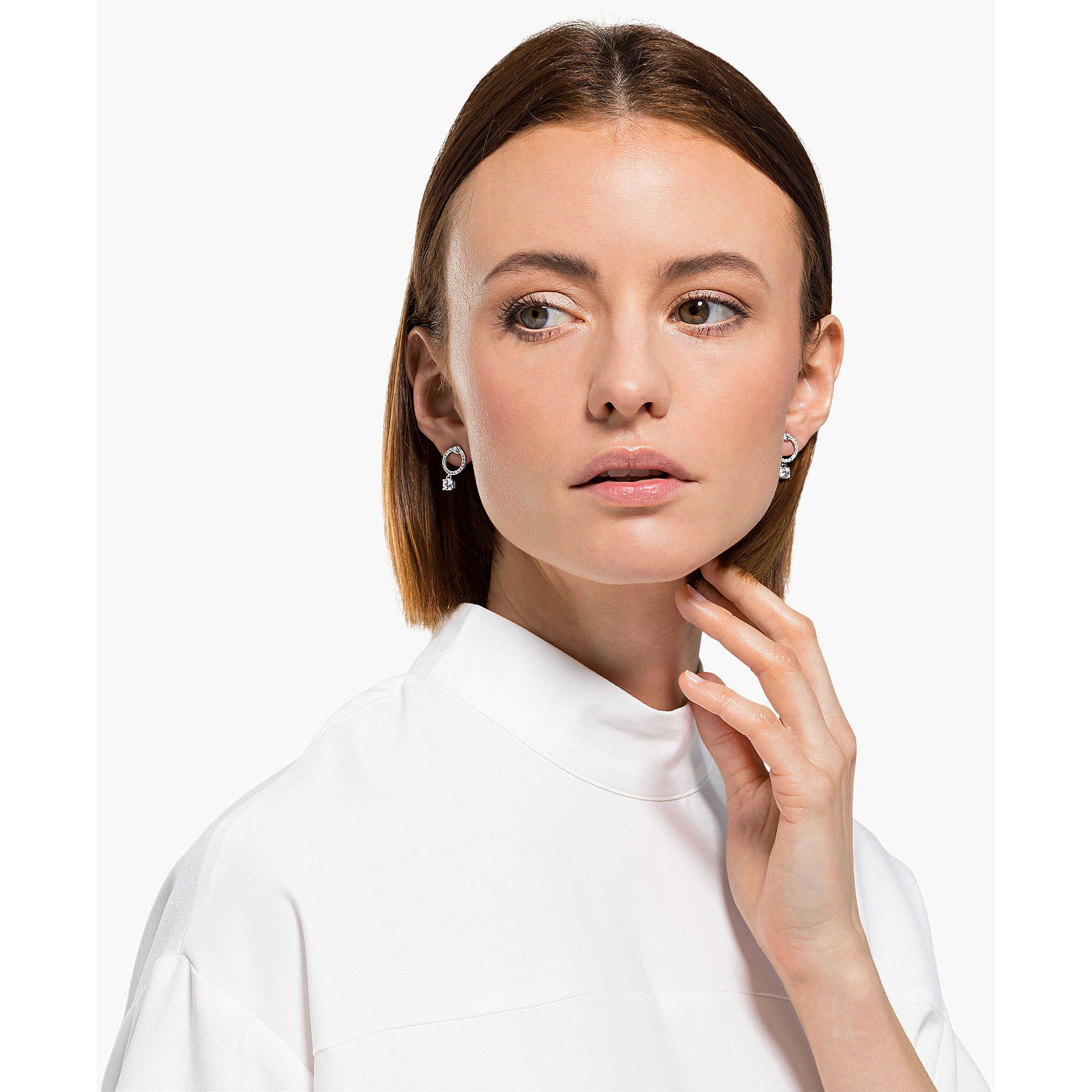Swarovski women's earrings from the attract collection. Jewel made of hypoallergenic metal alloy and Swarovski crystals with rhodium plating. The crystals are white. Hole earrings. Measure: 1. 8x1. 1 cm. The reference is 5563278