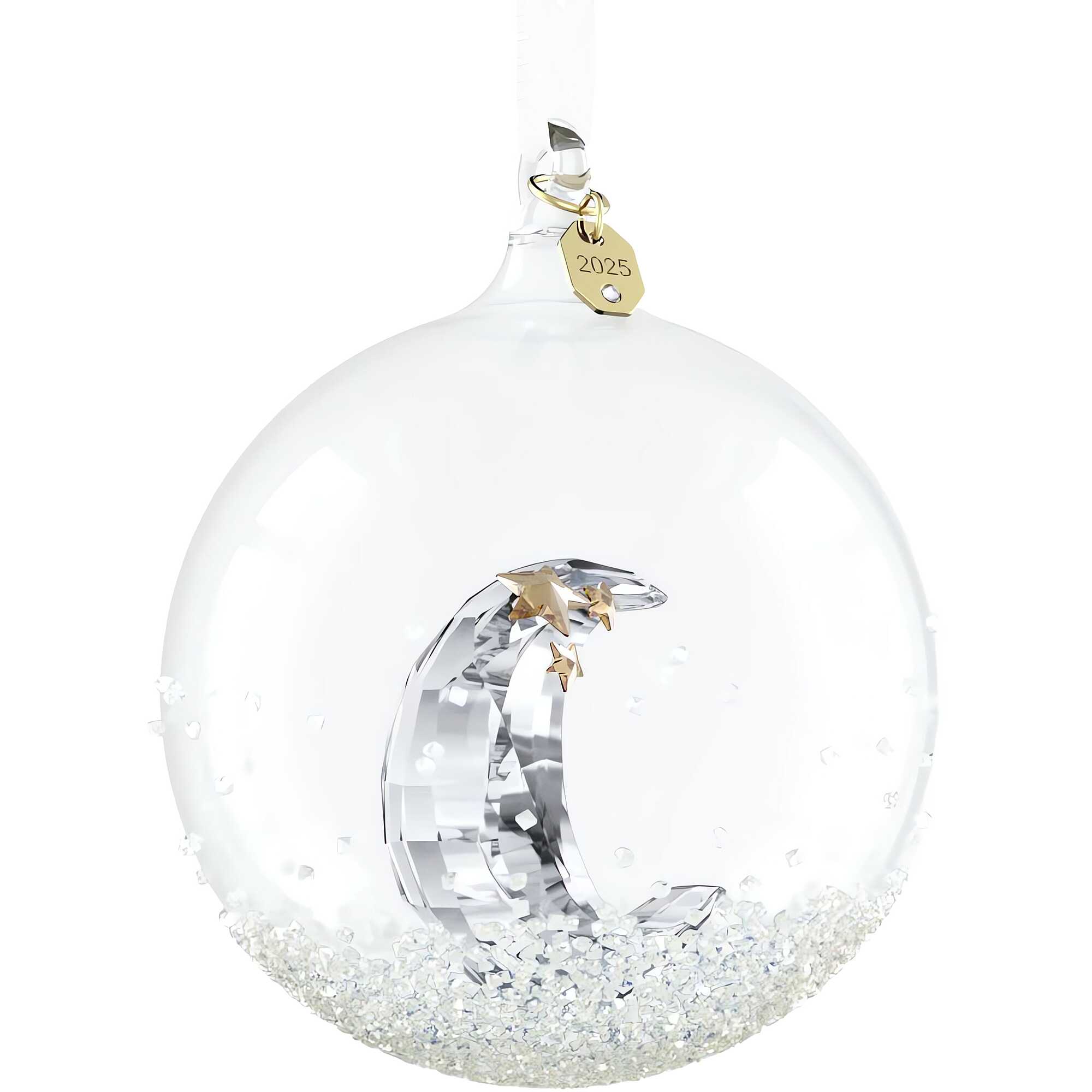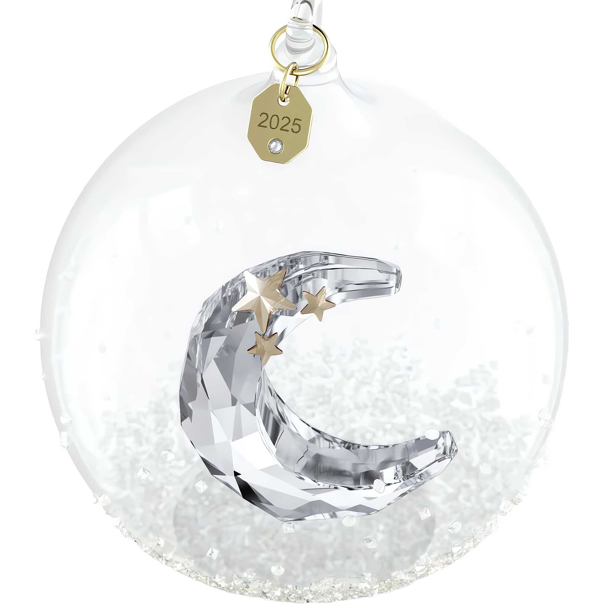 Swarovski decoration from the Annual Edition collection with white crystals. Adorned with approximately 2,200 crystals and an inner crescent moon featuring 158 facets, suspended from a white gros-grain ribbon. Size: 10.9 x 7 x 7 cm.
