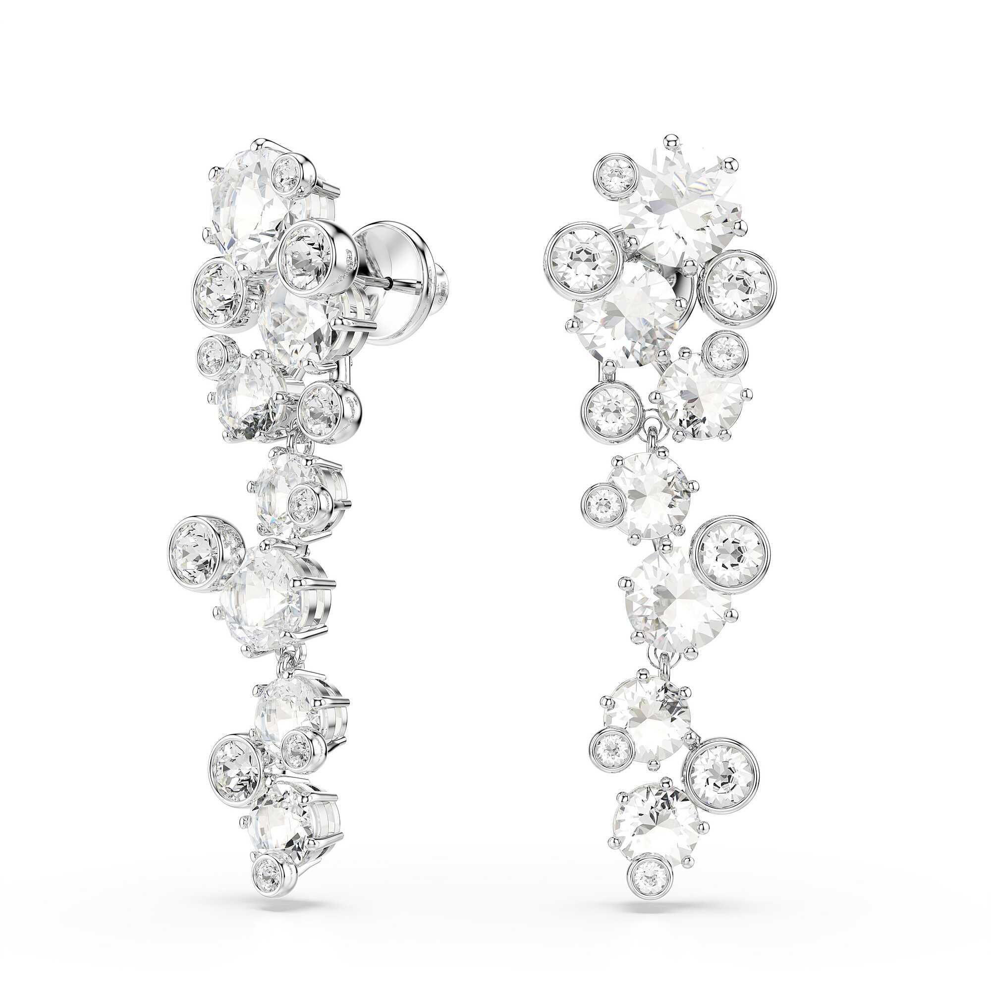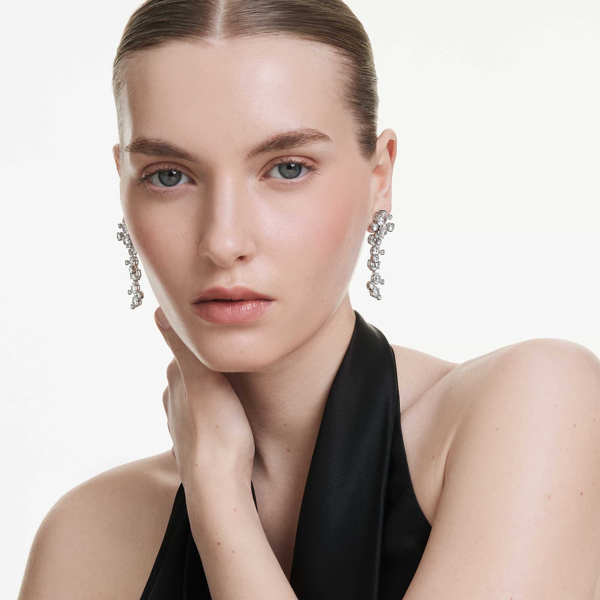 Swarovski Constella Drop Earrings, rhodium-plated with white crystals. Size: 5.3 x 1.7 cm