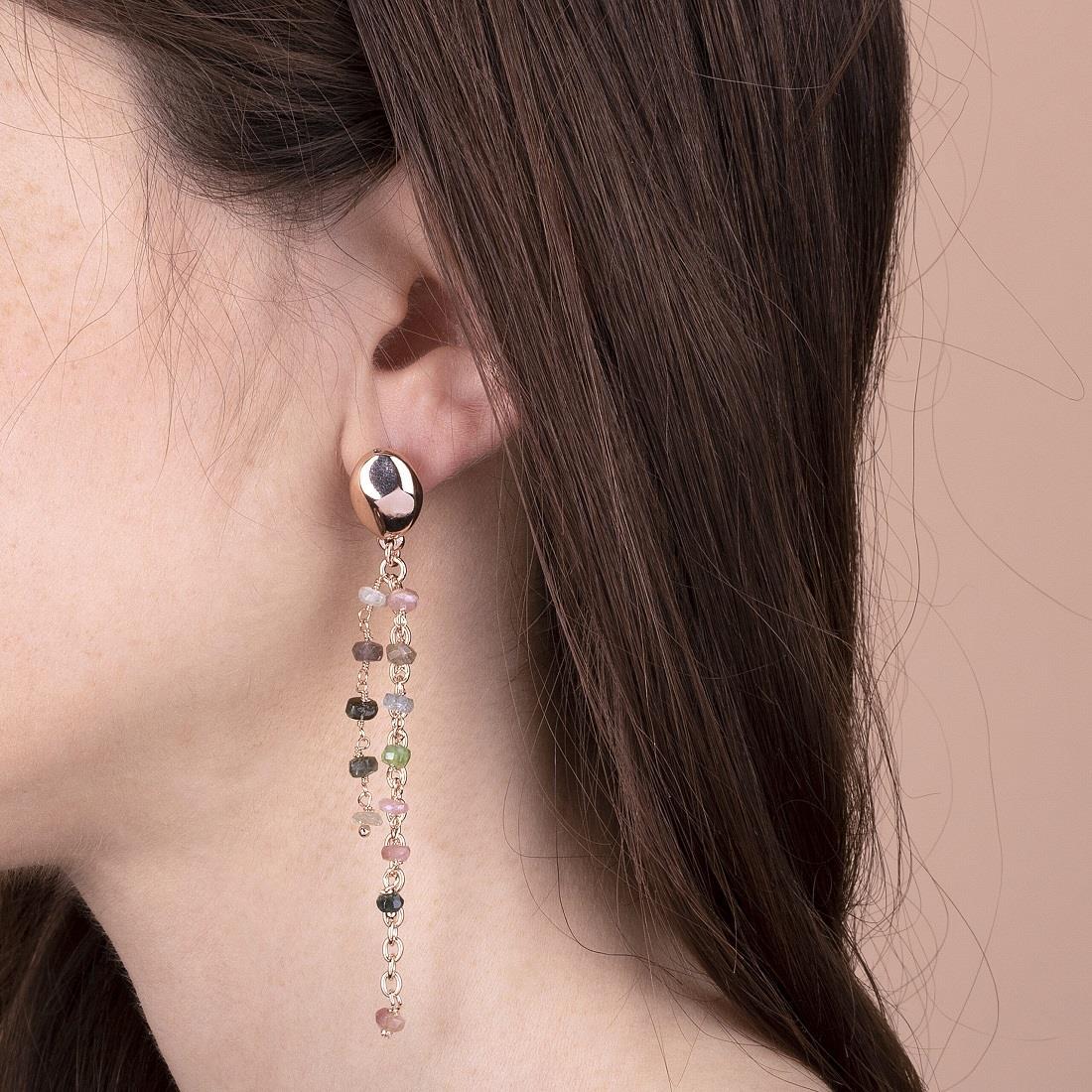 Bronzallure earrings in gold plated silver with coloured tourmaline. Variegata collection