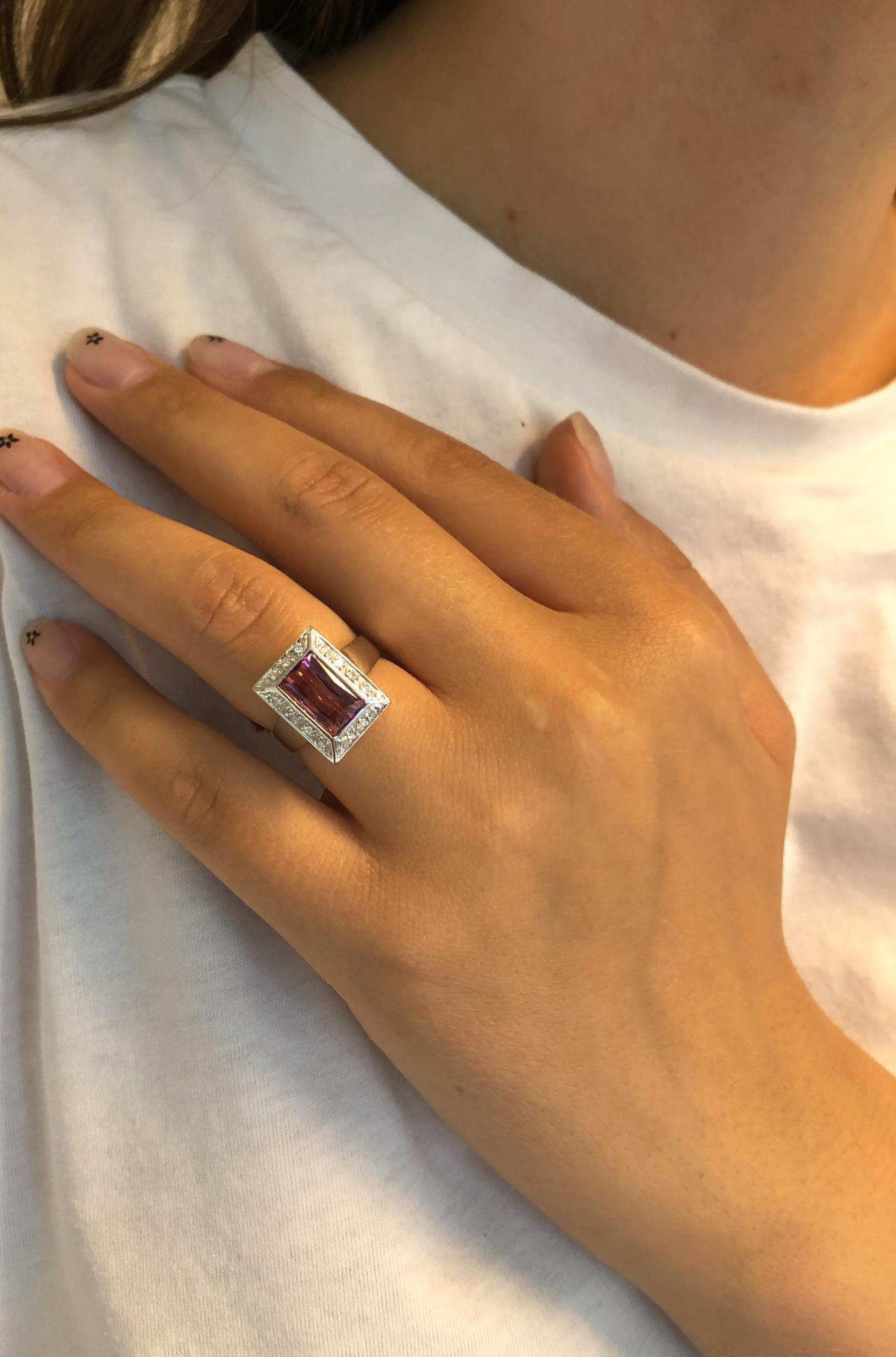 Stanoppi 18 kt white gold ring with pink torumaline and diamonds ct 0.15