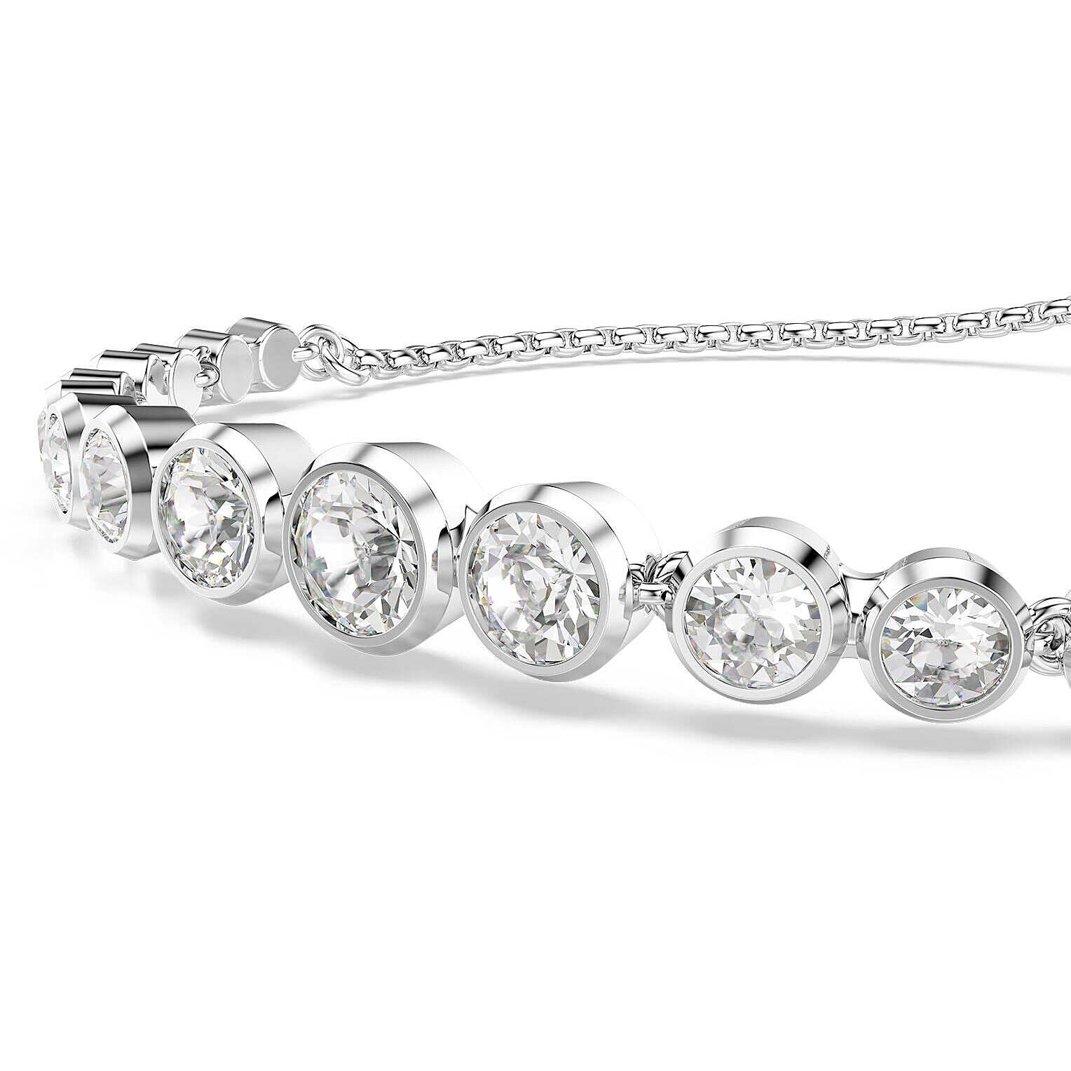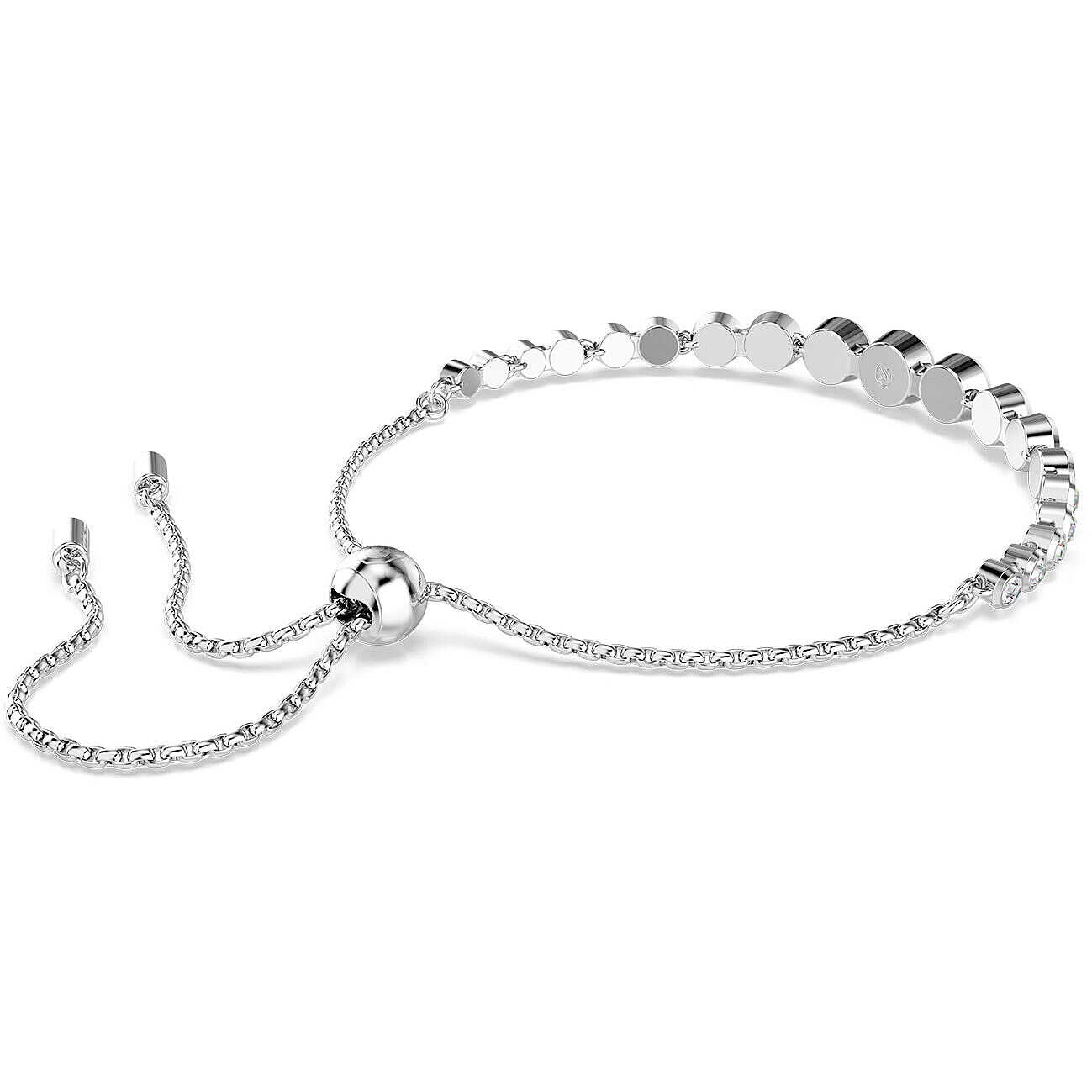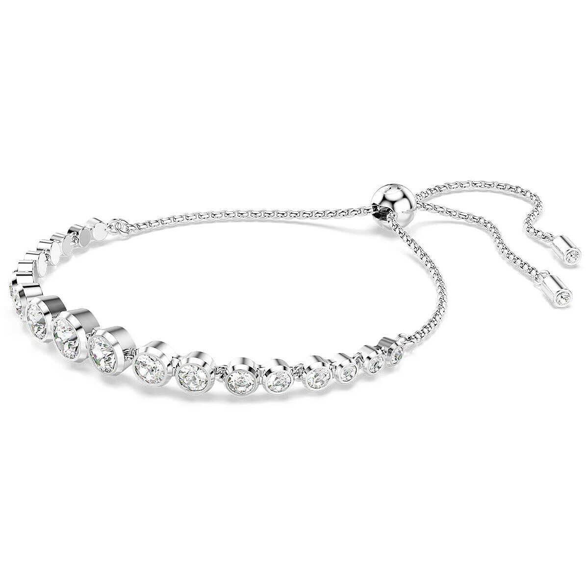 Swarovski women' bracelet from the imber collection. Rhodium plated bracelet with Swarovski crystals Mixed rounded cuts, white crystal color. Sliding closure. The reference is 5705451