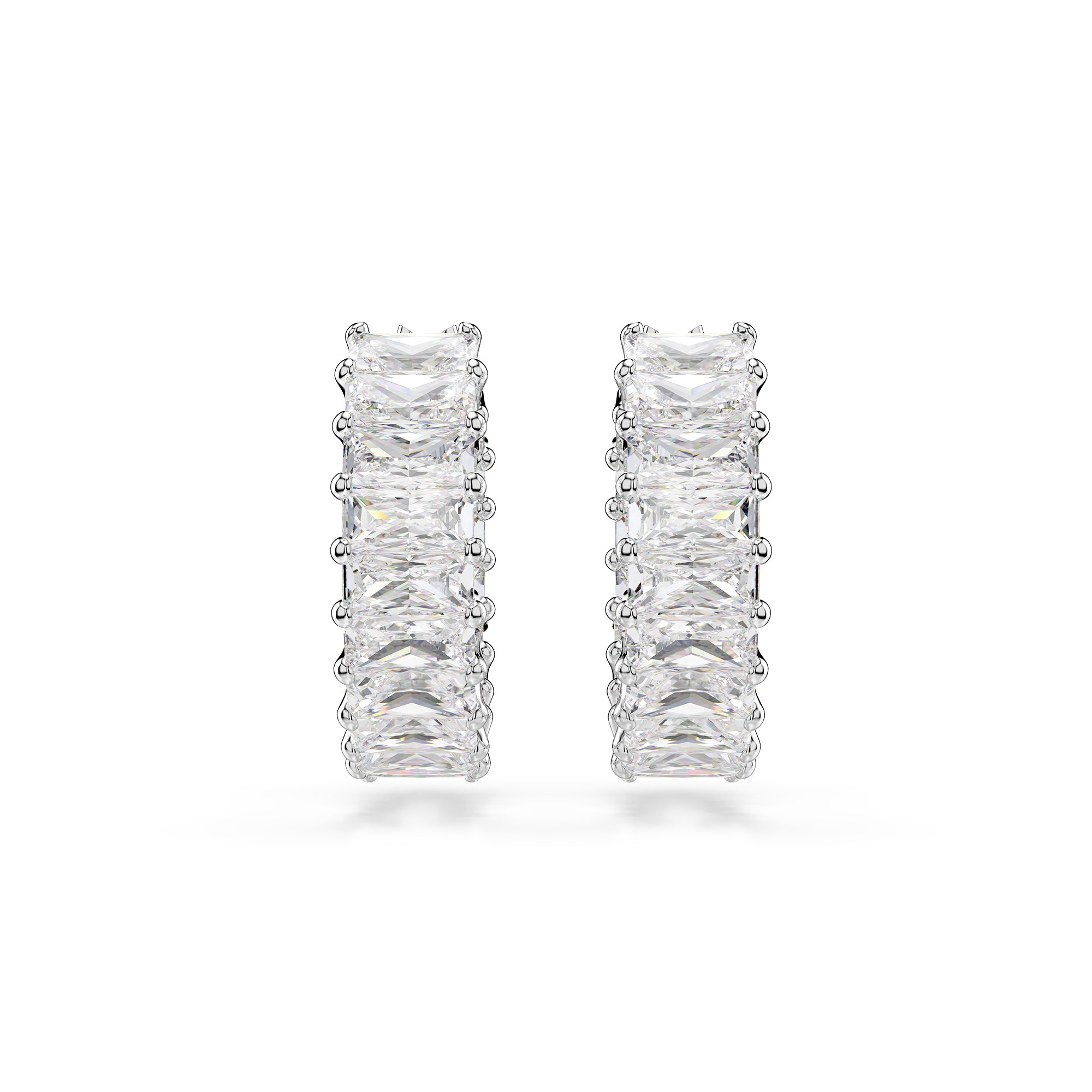 Swarovski Matrix Hoop Earrings with white baguette-cut crystals, rhodium-plated. Size: 2 x 0.5 cm