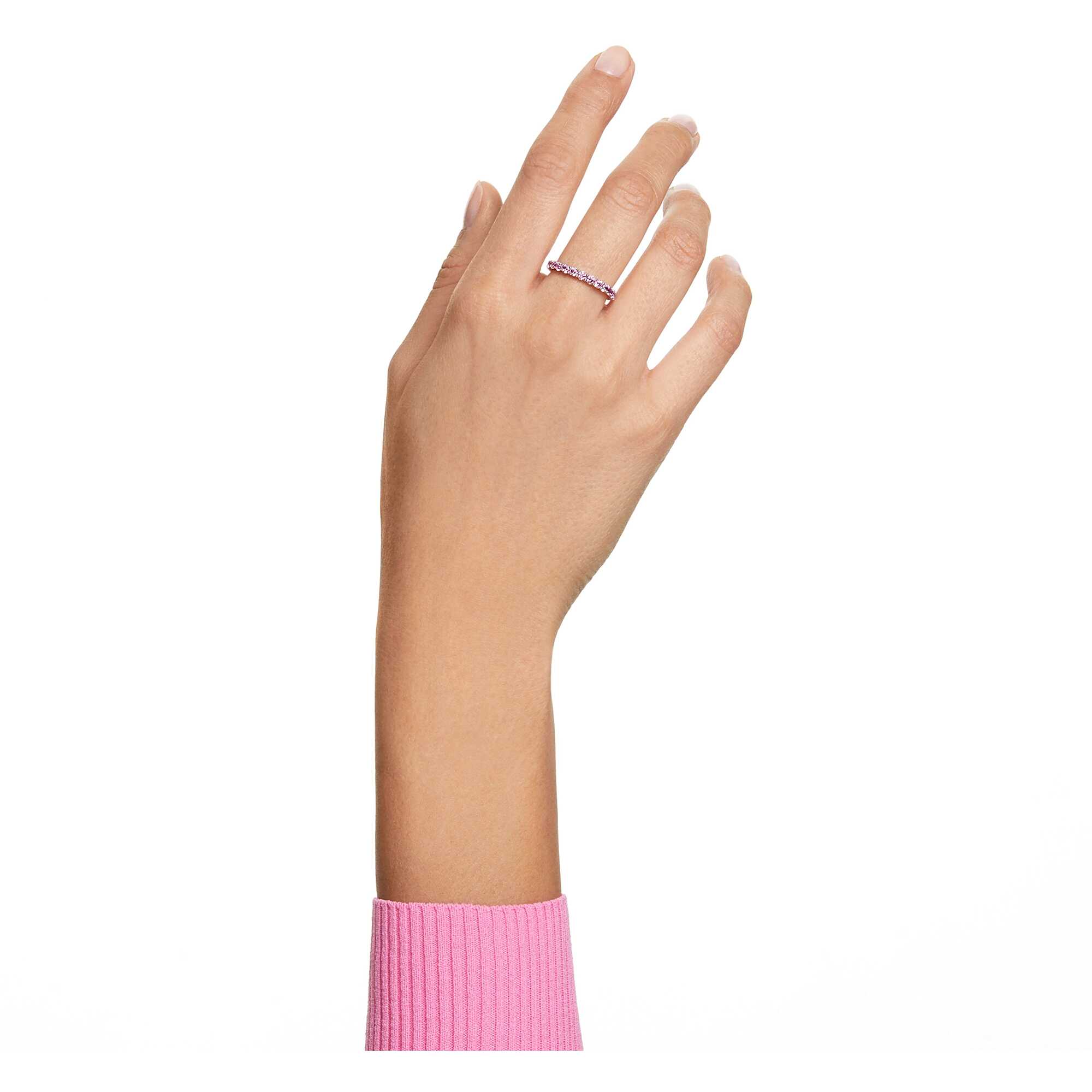 Swarovski Matrix Ring, Round Cut, Pink, Rhodium plated. Size 50 - EU 10. This fun ring was made with playfulness in mind. Set in a rhodium plating, the design is decorated in the round with charming purplish-pink colored stones. Combine it with other styles from the Matrix family to create an original rainbow of colours. The reference is 5658852.