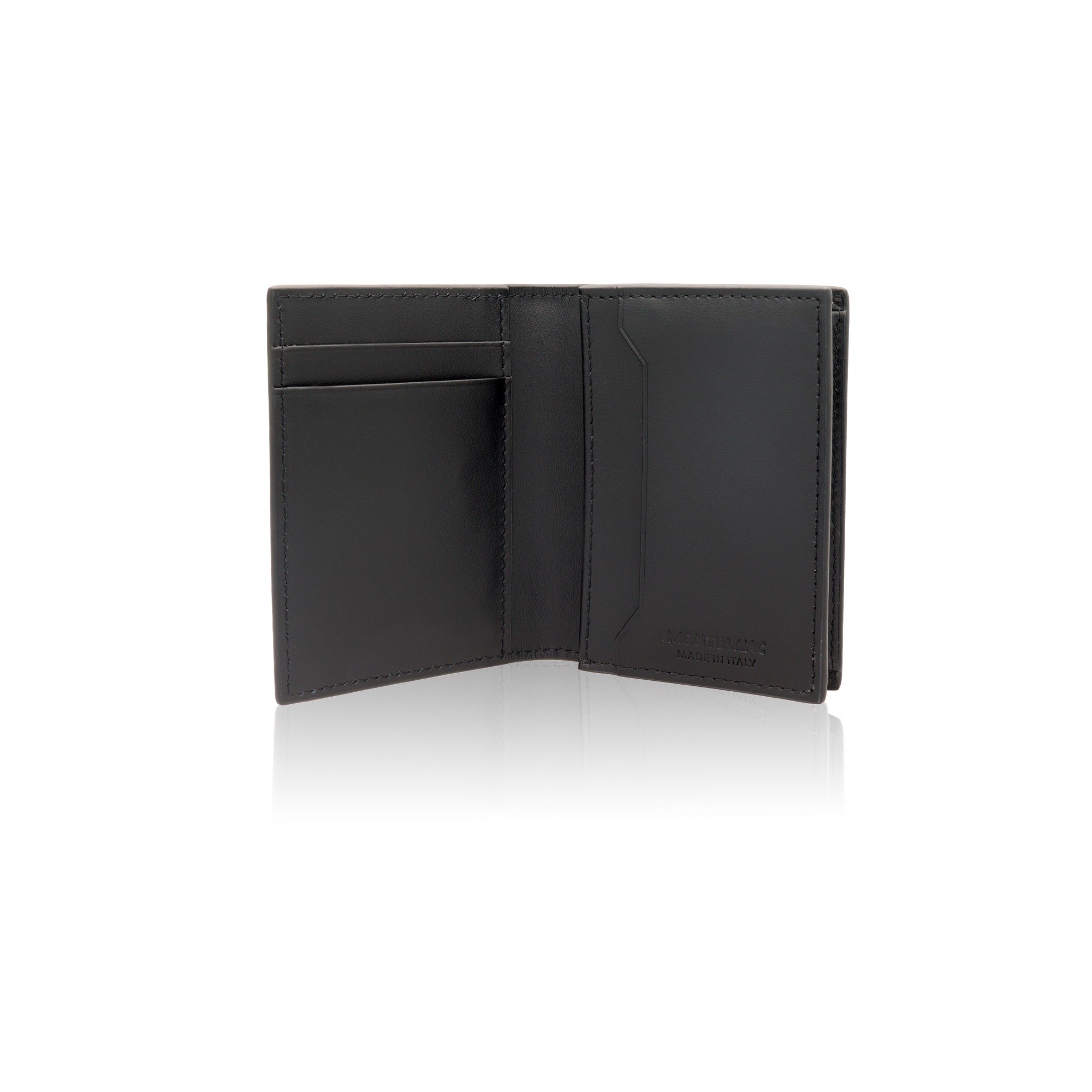 Montblanc card holder Meisterstück collection in black bovine leather with 4 compartments. Size 80 x 10 x 105 mm.