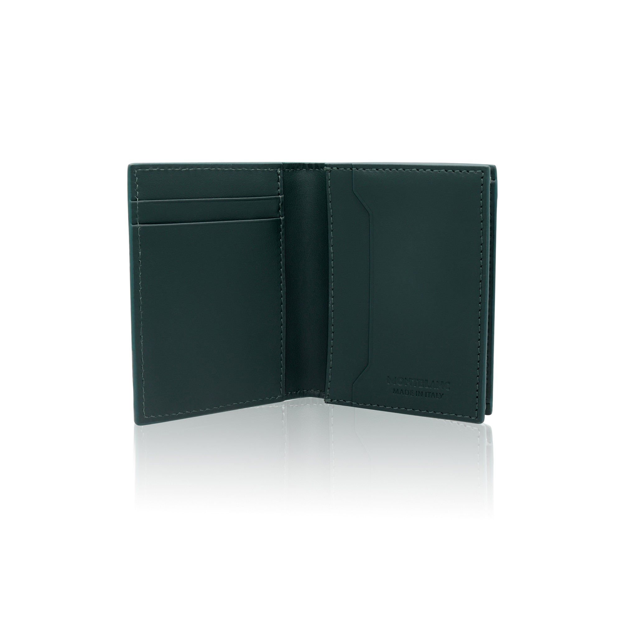 Montblanc card holder Meisterstück collection in green bovine leather with 4 compartments. Size 80 x 10 x 105 mm.