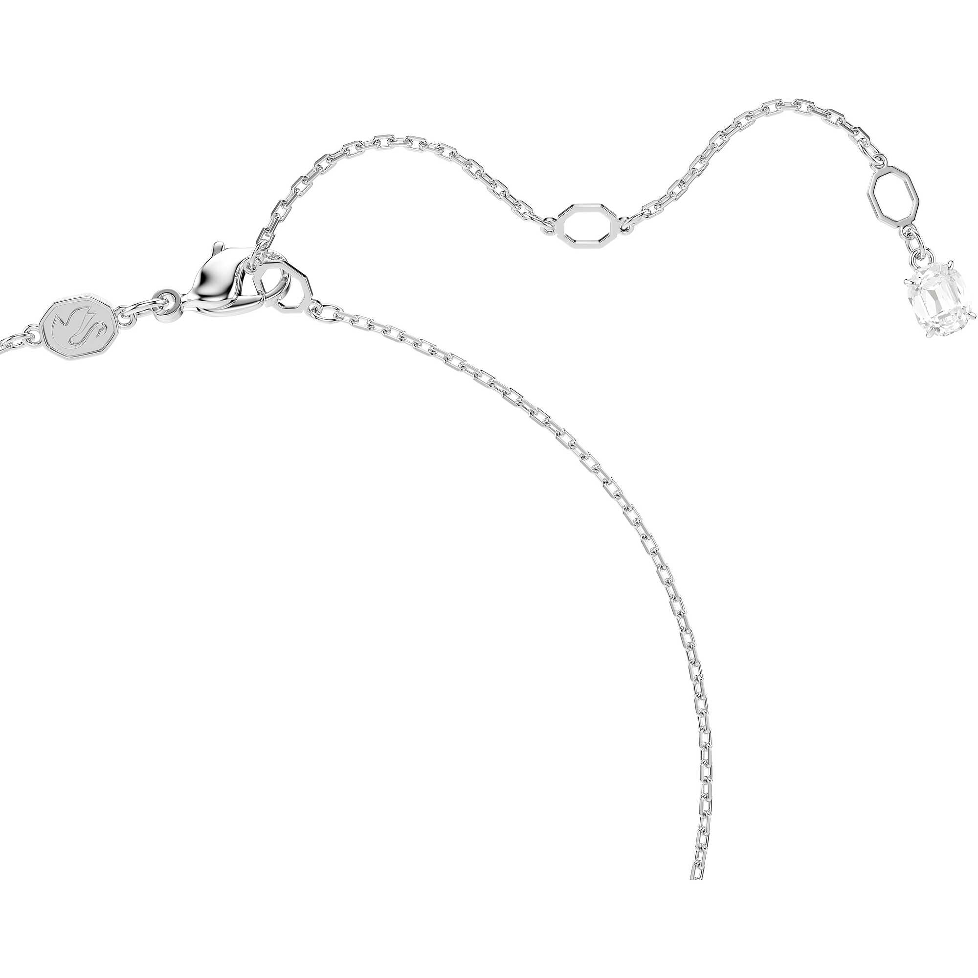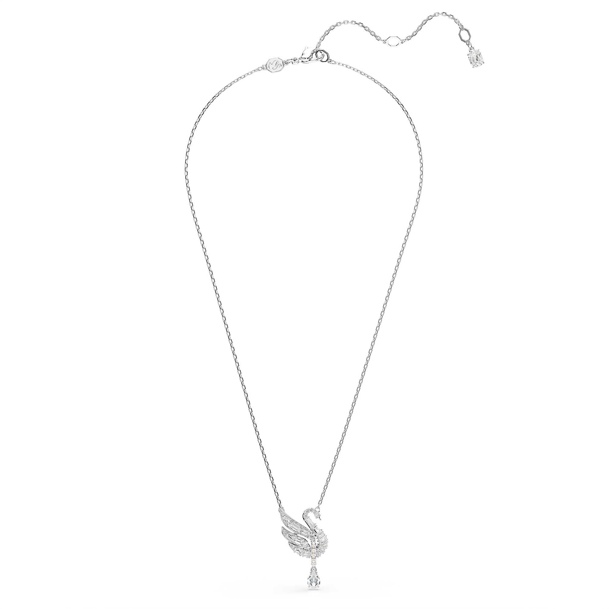 Swarovski necklace from the Swan collection rhodium-plated with transparent crystals. The swan-shaped pendant is adorned with Pear-cut crystals and a circle with Crystal Pearls pavé. Size: length 38 - 45 cm, decoration size 2.8 x 1.6 cm.