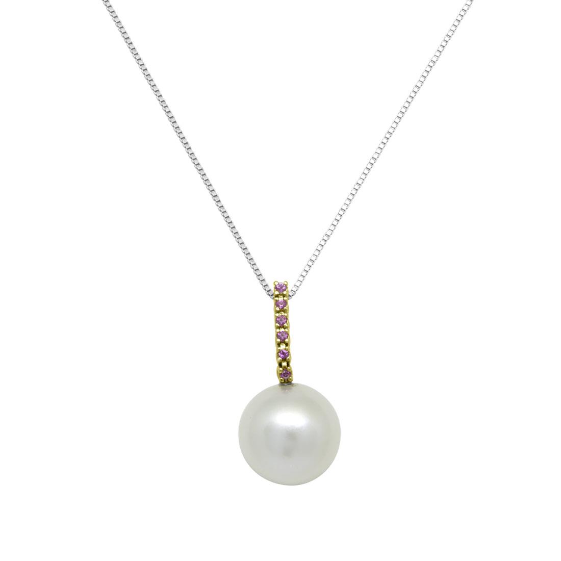 Roberto Demeglio necklace with white gold tennis pendant in pink sapphires ct 0.04 and white pearl, length 40cm + 2; look all the options available