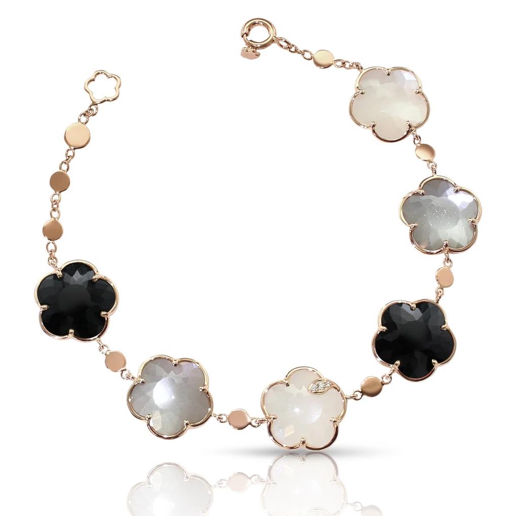 Pasquale Bruni Bouquet Lunaire Bracelet in Rose Gold with Gray and White Moonstone, Onyx and Diamonds 0.04 ct. Lenght 17.5 cm