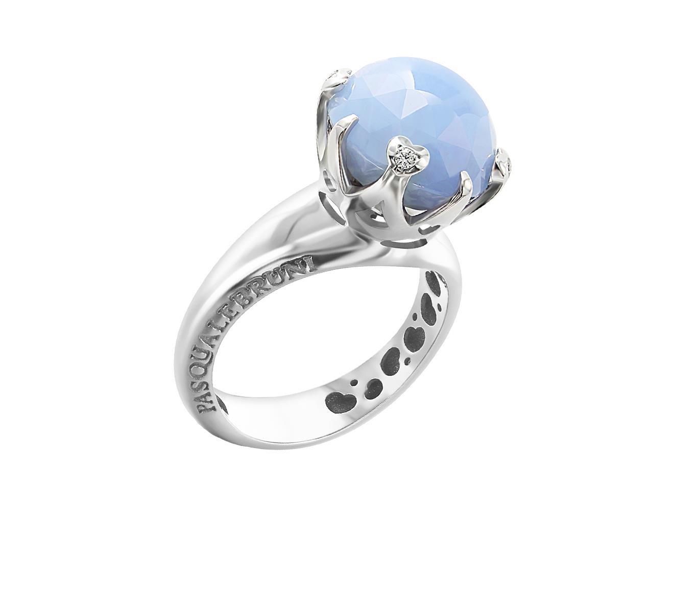 Pasquale Bruni ring, Corona Sissi Collection, in white gold with ct. 0,04 diamonds, colour F/G, clarity VVS/VS, and calcedonia
