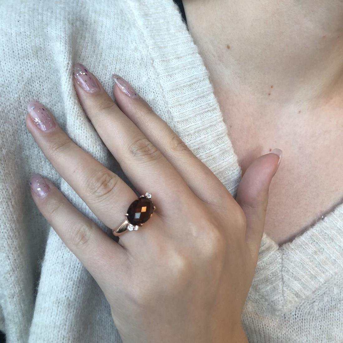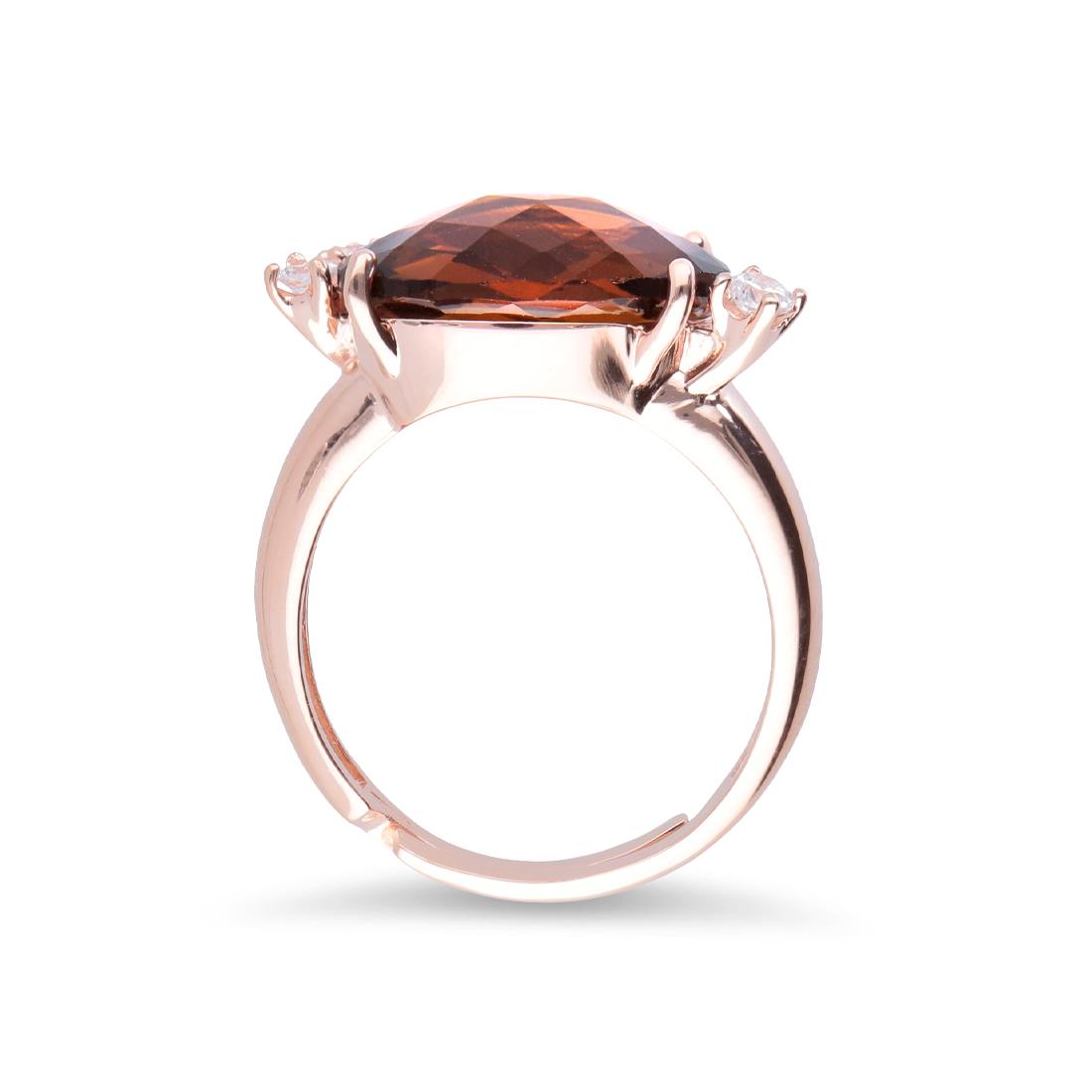 Oro&Co 925 ring in rose gold silver with brown stone and zircons. Adjustable size from size 12.