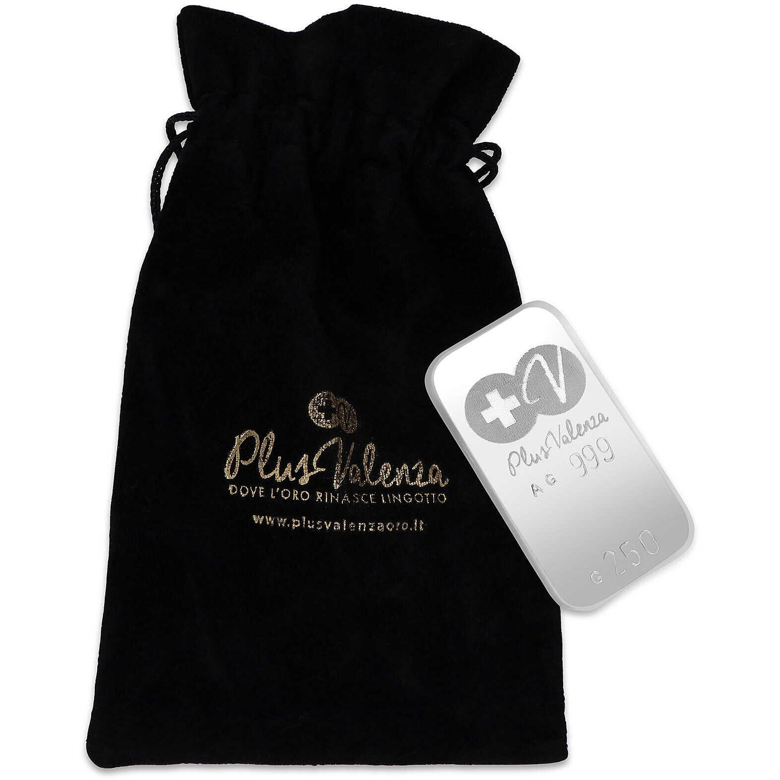 Silver bar 999 by Plus Valenza. Weight: 250 grams. The price of the bar is subject to change according to daily market quotations.