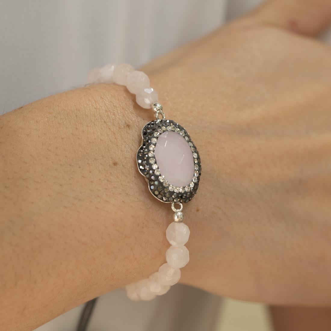 Silver bracelet with elastic Luxury Fashion collection with pink stone