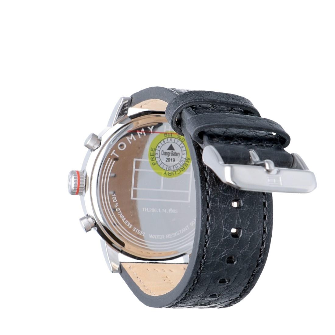 Tommy Hilfiger Jake watch, quartz, steel case 46 mm, leather black band, WR 5