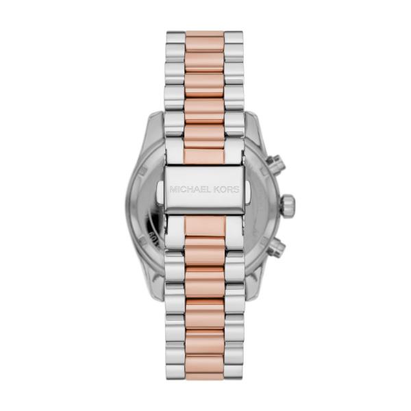 Michael Kors watch with 38 mm steel case in silver colour, pink dial and steel band. Water resistant up to 100 m and quartz movement.