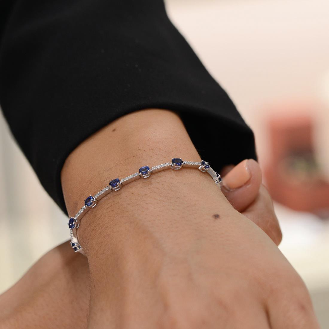 ORO & CO bracelet in white gold with 0.48 ct diamonds color I clarity SI1, interspersed with sapphires 4.00 ct total