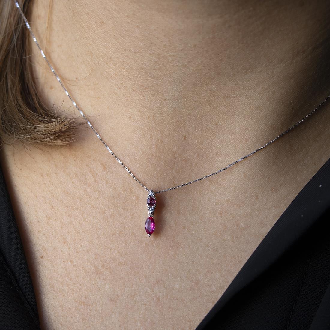 White gold ORO&CO necklace, with ct. 0,02 diamonds, colour H, clarity SI2 and ct. 0,40 rubies pendant