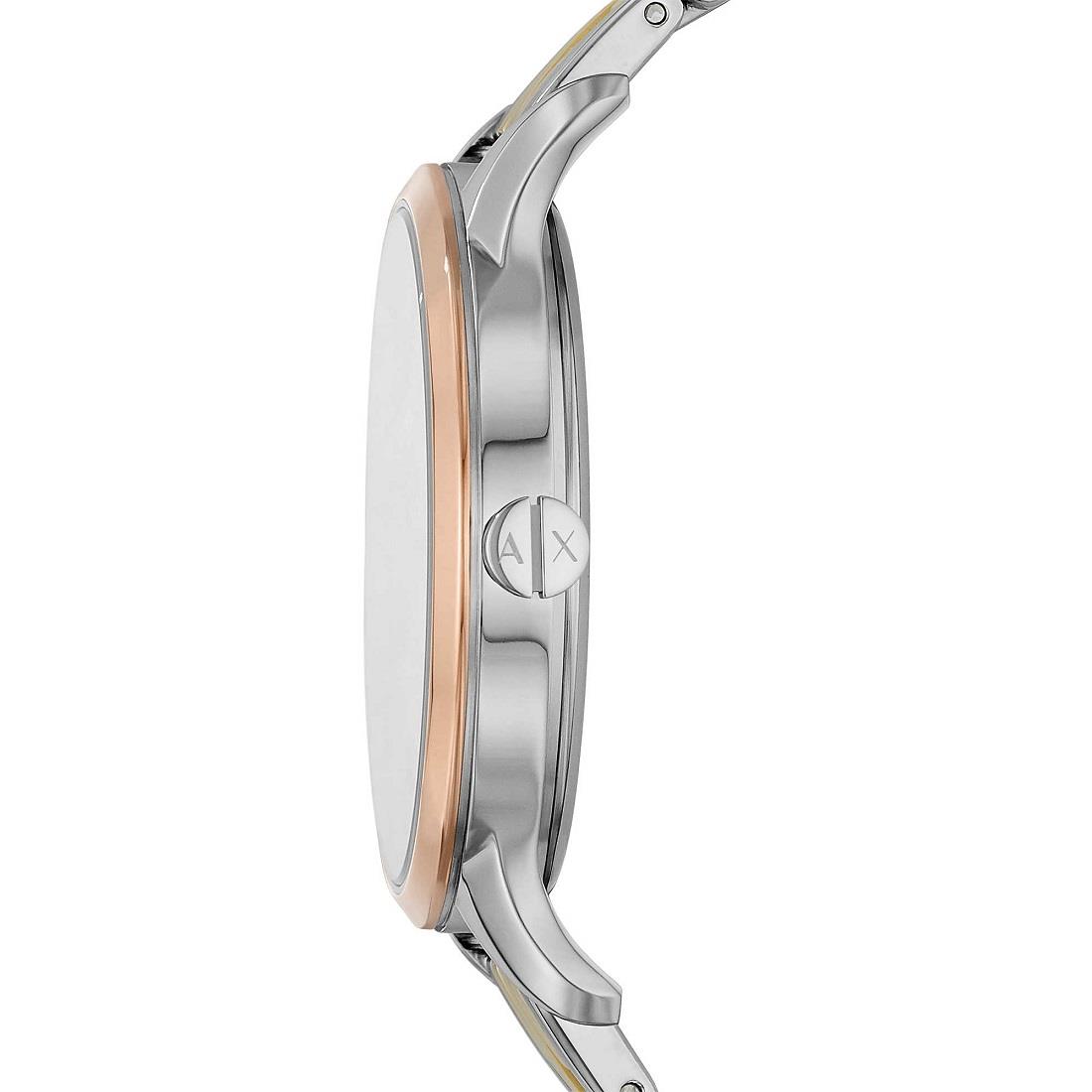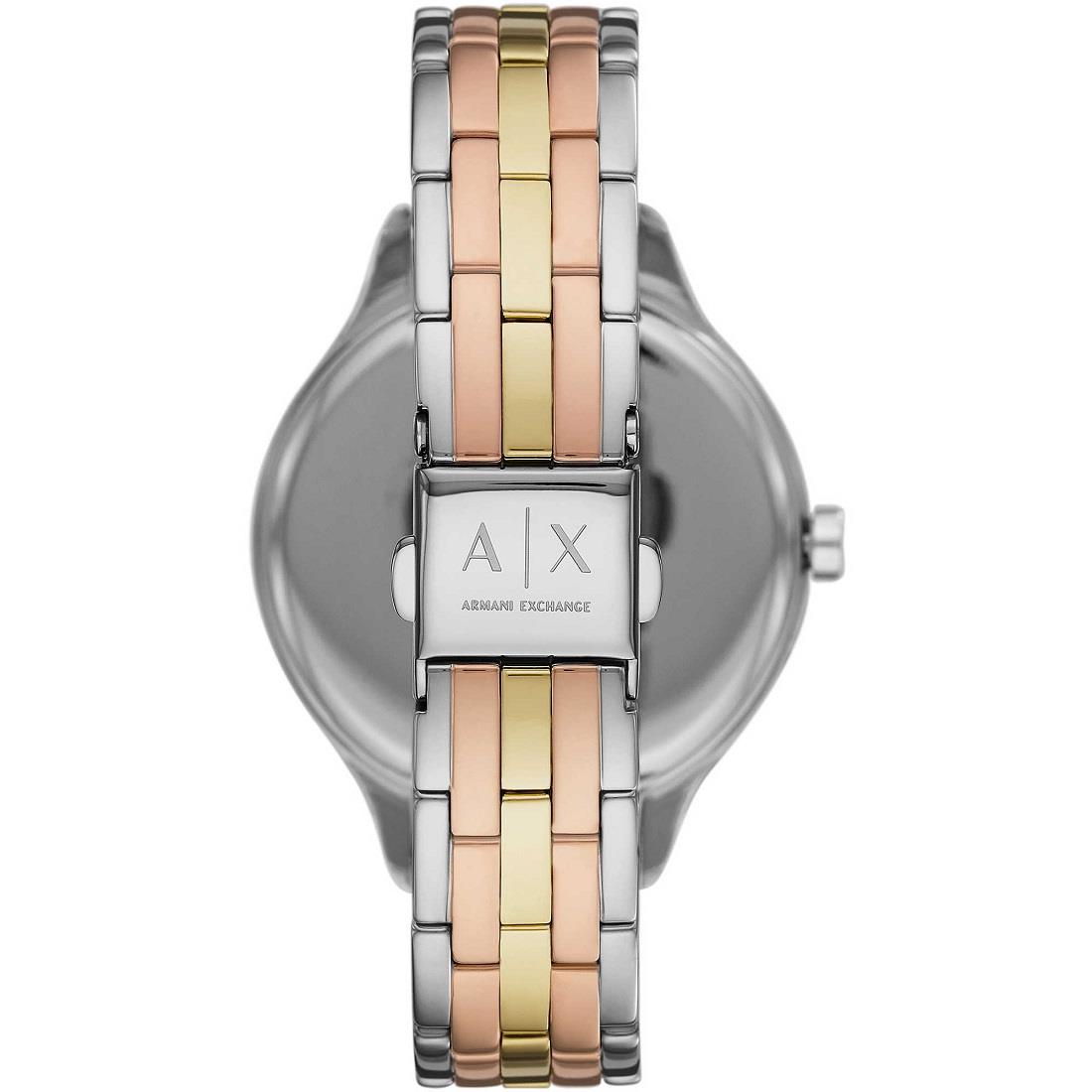 Armani Exchange women's time only watch from the Harper collection, 38mm diameter stainless steel case, stainless steel strap with IP Gold treatment. Water resistant up to 5ATM.