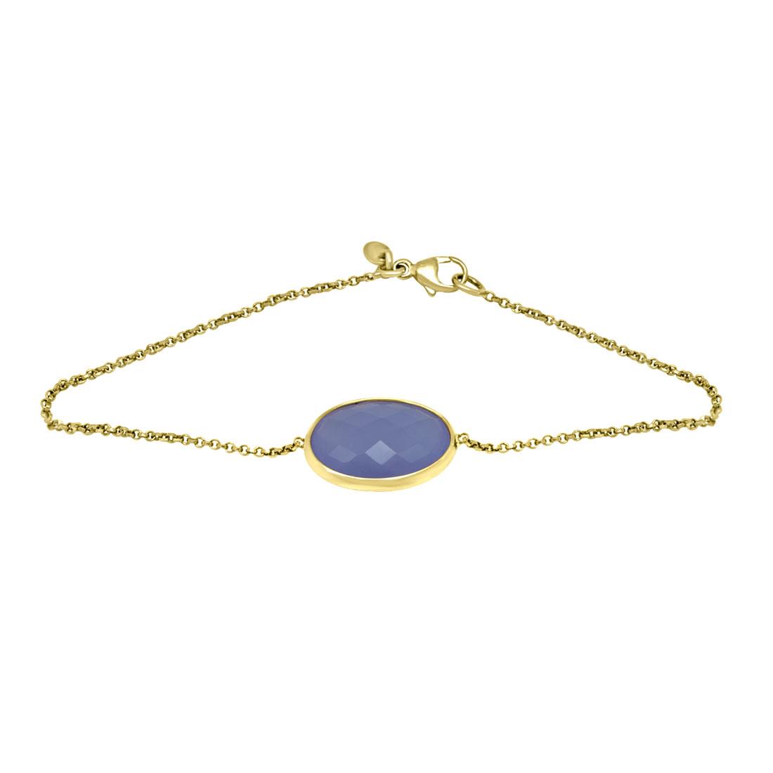 Zoccai woman's bracelet in golden silver with violet oval saped hydrothermal stone, 18 cm lenght