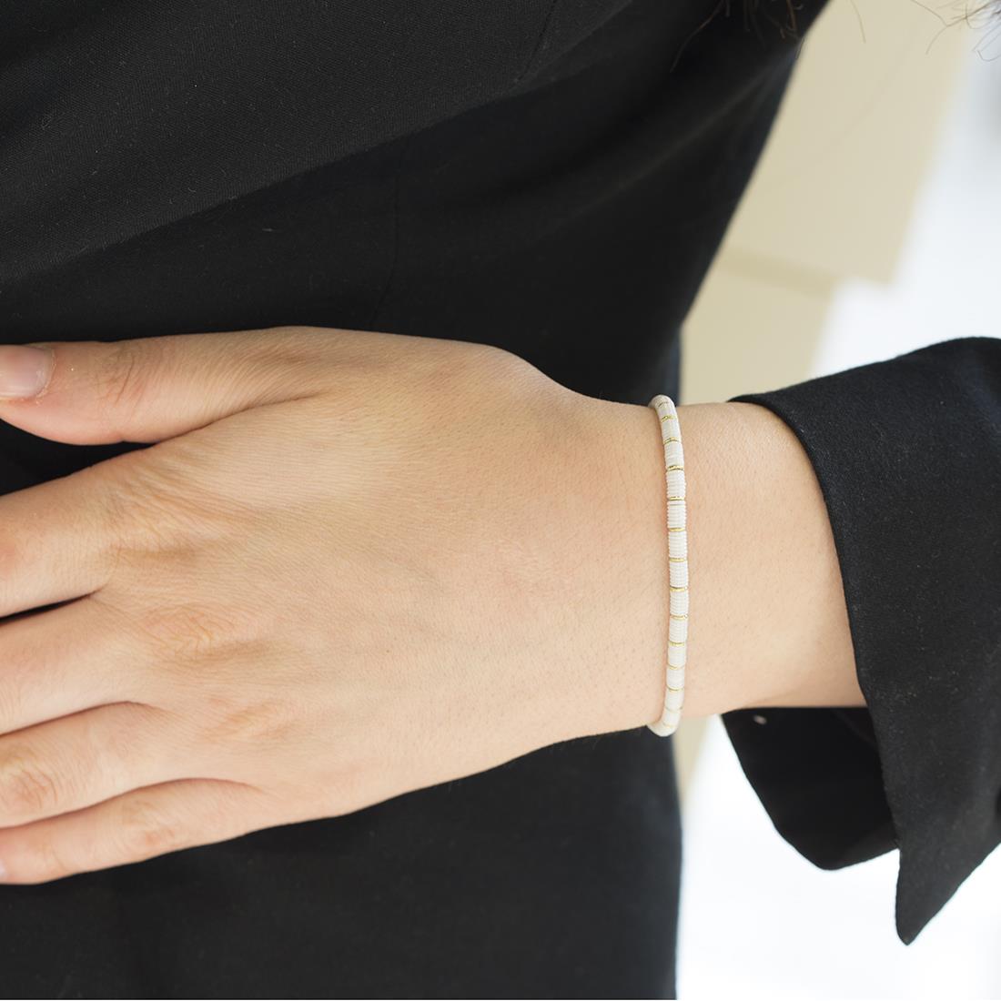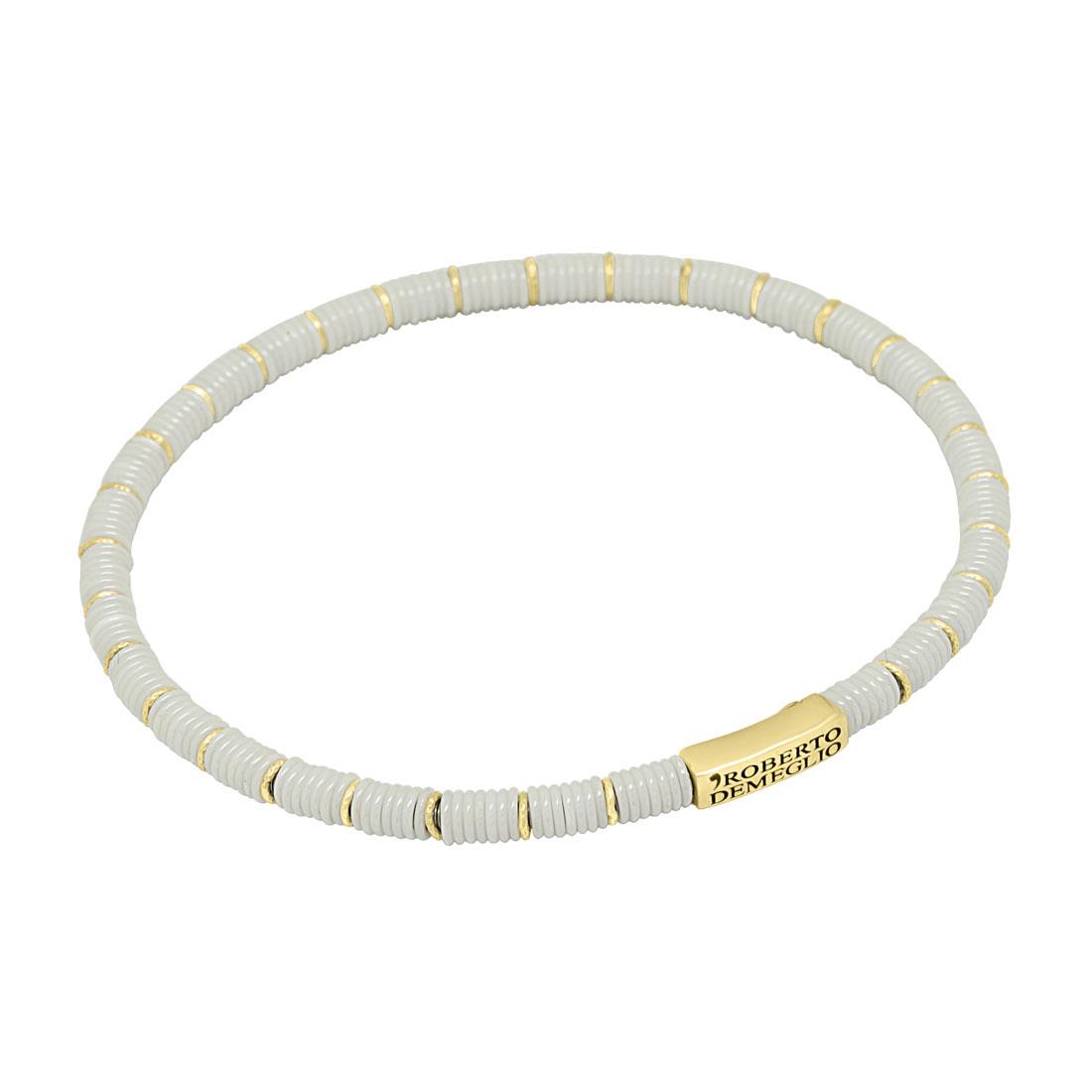 ROBERTO DEMEGLIO elastic bracelet with washers in white ceramic and yello gold.