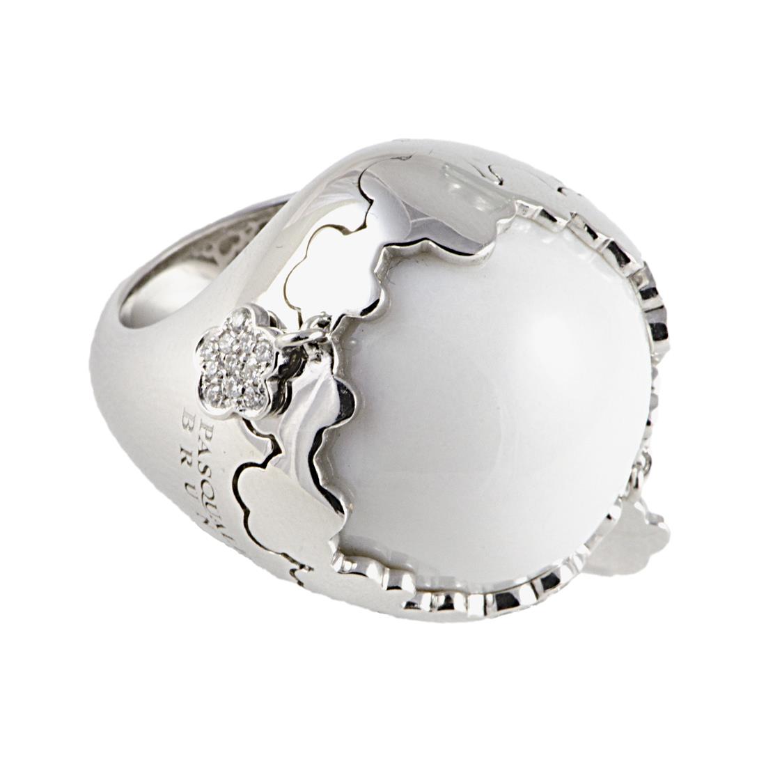 Anello Pasquale bruni in oro bianco a fiore namastè con diamanti 0,24 carati, misura 14