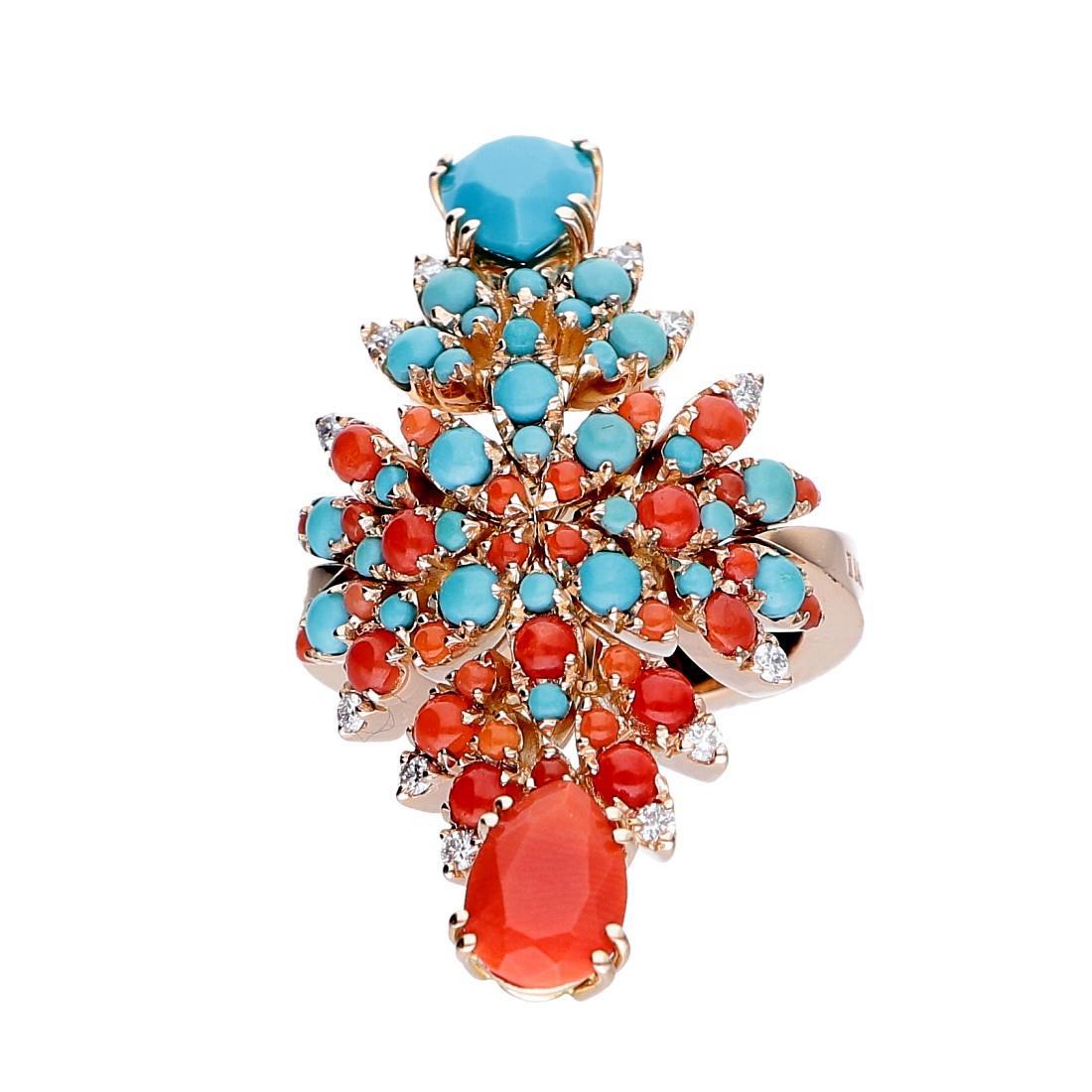 Anillo con diamantes, turquesa y coral - PASQUALE BRUNI
