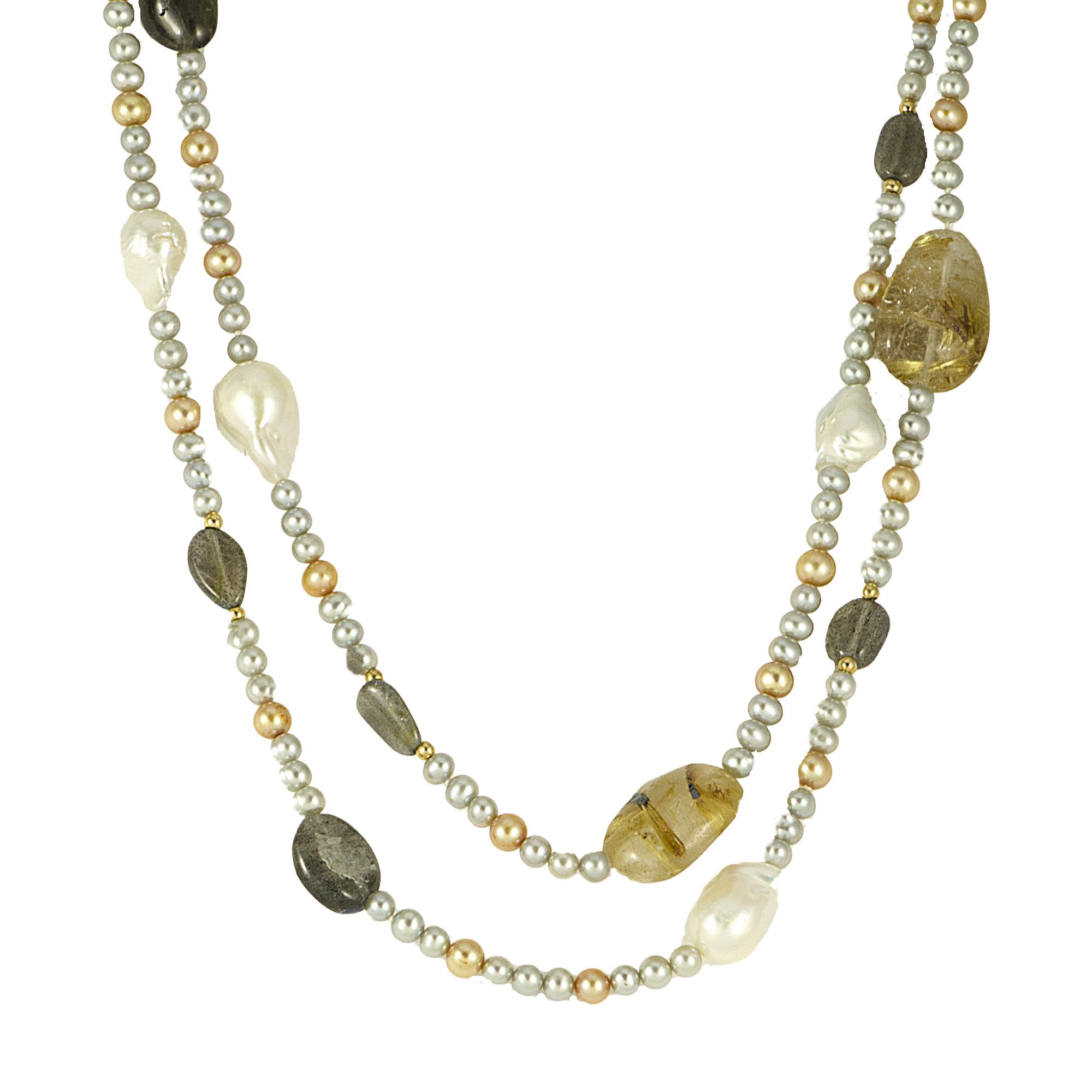 COLLANA CON PERLE E QUARZO BRUNO - RIVIK
