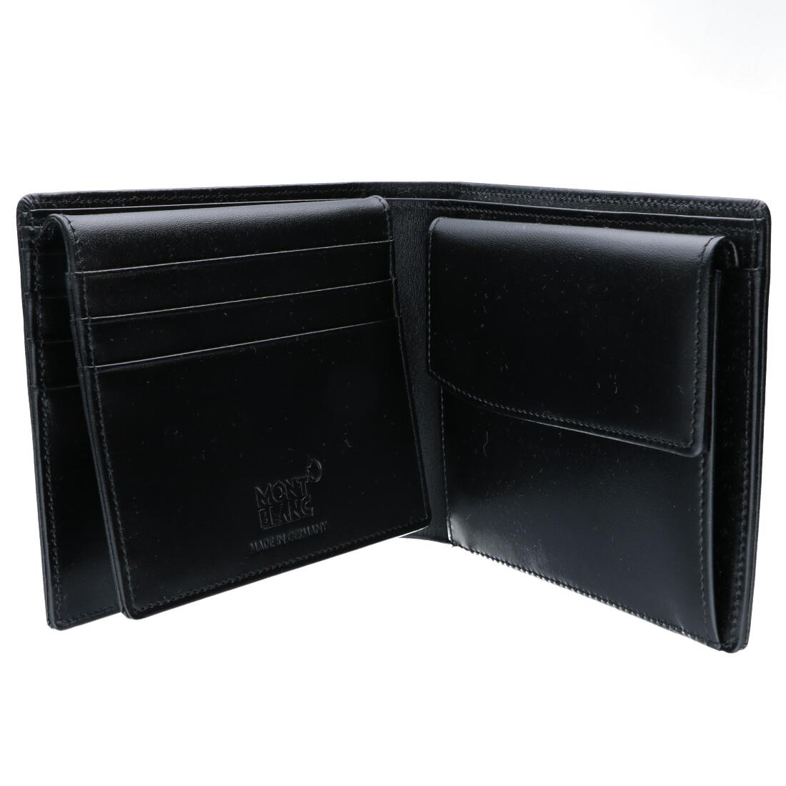 Cartera Meisterstruck Montblanc horizontal en cuero negro con monedero, 2 compartimentos para billetes, 11,5 x 9,5 cm.