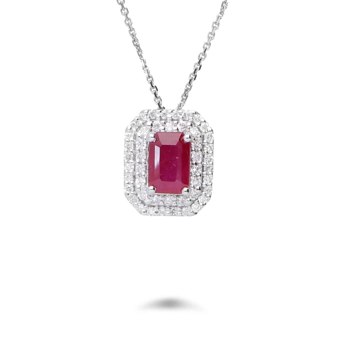 Collana in oro con diamanti e rubino ottagonale ct. 0,60 - ALFIERI & ST. JOHN