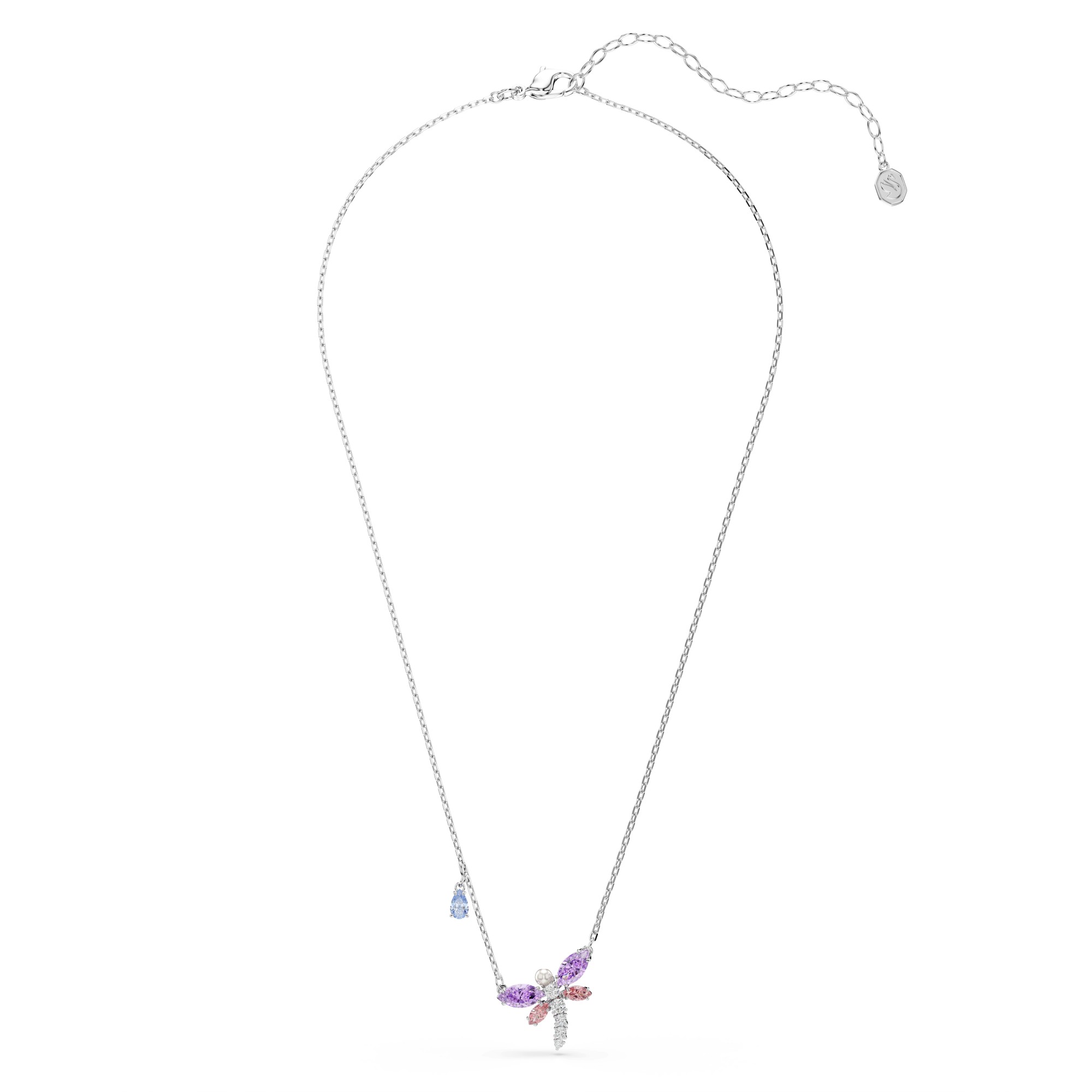 Collar de mujer de Swarovski de la colección Ariana Grande X Swarovski. Cristales y circonitas cúbicas multicolor de corte mixto crean una luminosa libélula, aún más radiante gracias al baño de rodio. Longitud (mínima - máxima): 38 - 45 cm Tamaño del adorno: 1.4 x 1.9 cm. La referencia es 5737383.