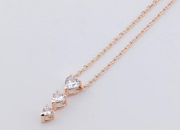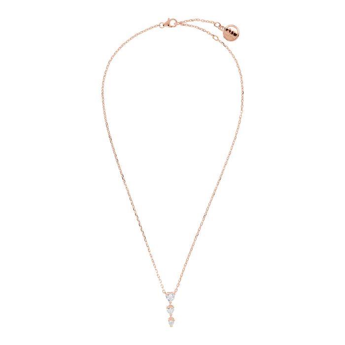 Collar Bronzallure realizado en aleación hipoalergénica con baño de oro rosa de 18k. Colgante en forma de corazón con trío de cristales blancos degradados. Broche de langosta.