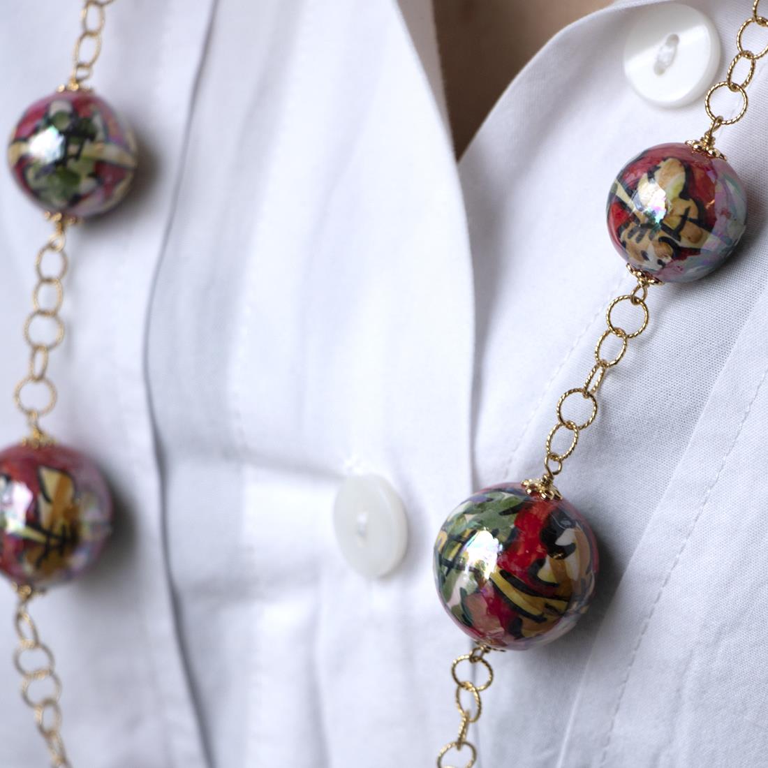 Collar Le Perle Di Caltagirone en plata y cerámica pintada a mano, mide 80 cm
