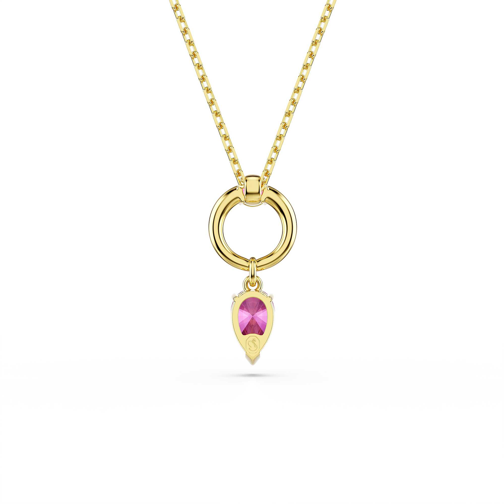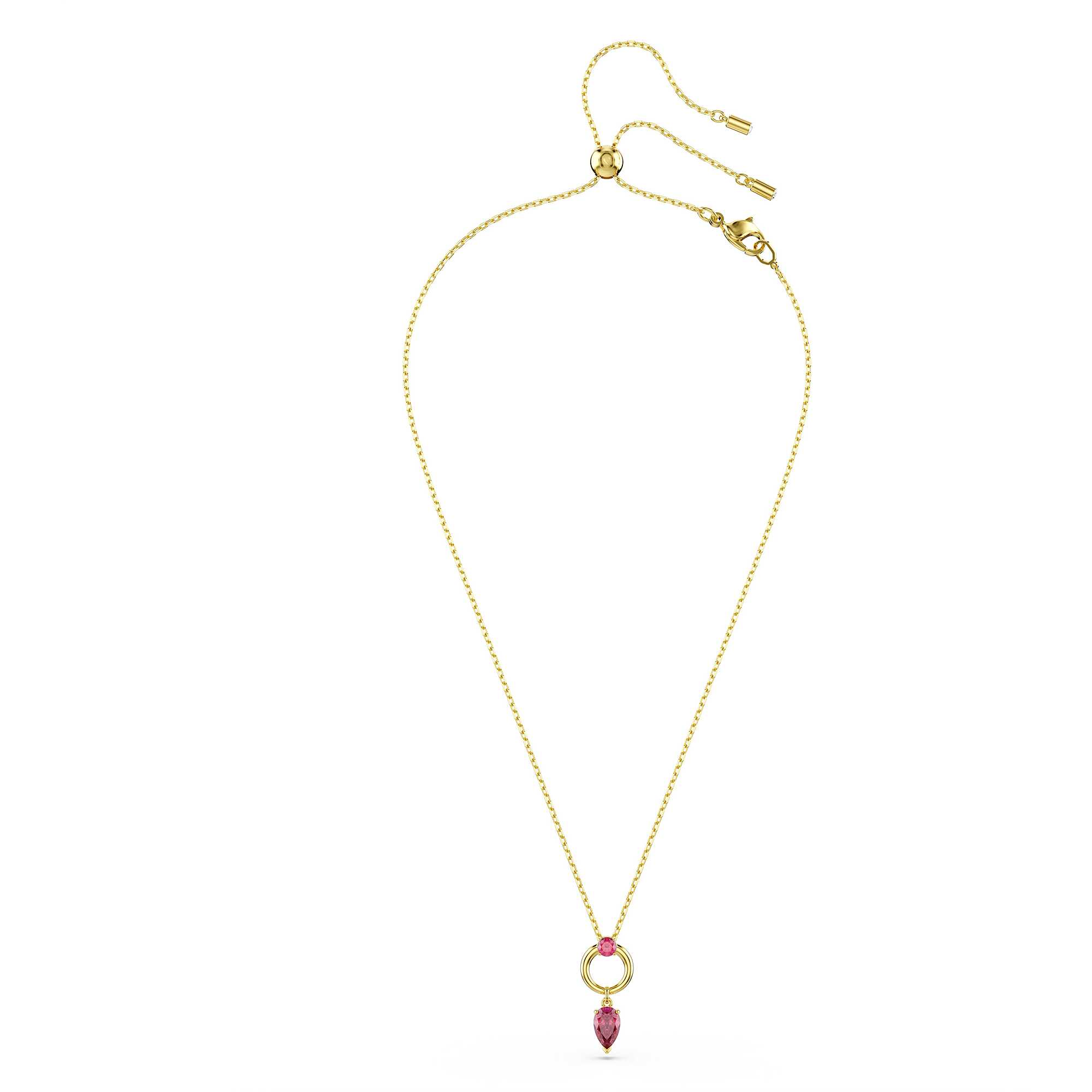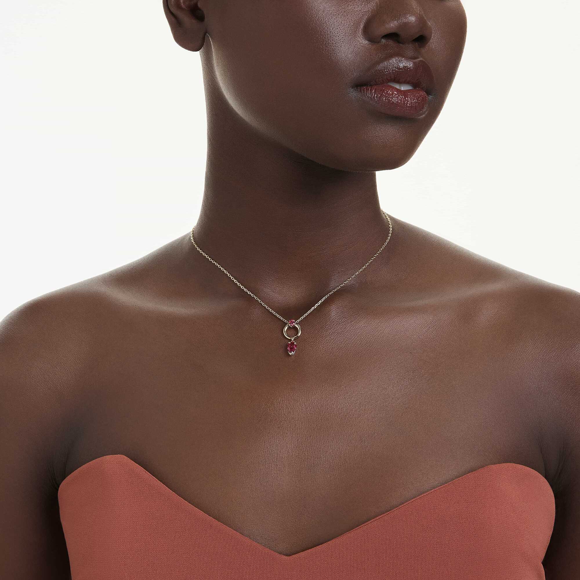 Collar Swarovski de la colección Mesmera chapado en tono dorado con un cristal rojo de talla pera y un cristal rosa de talla redonda. Longitud: 38 - 45 cm. Tamaño del adorno: 2.2 x 1 cm.