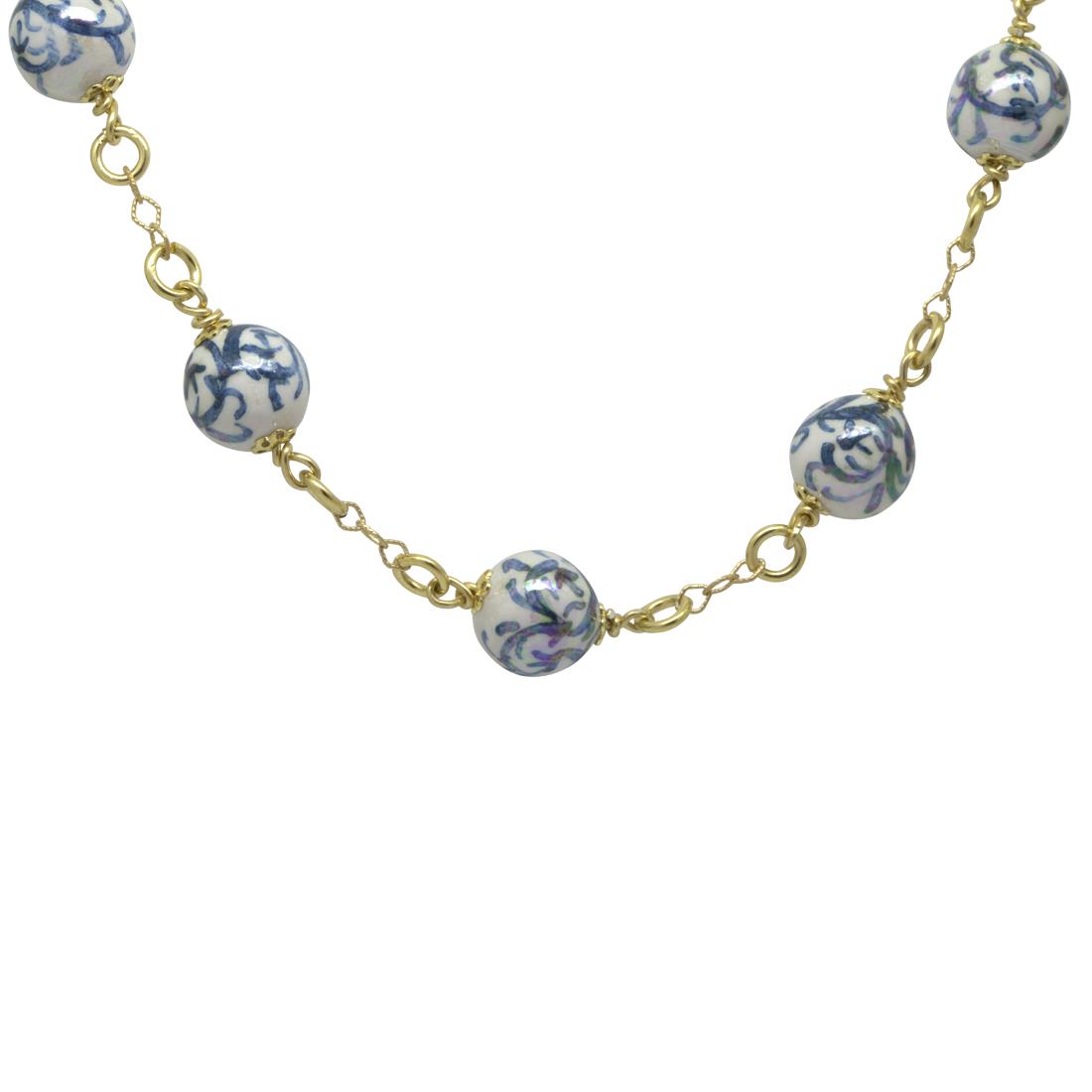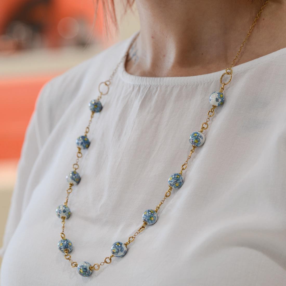 Collar en plata y perlas de cerámica, longitud 74cm - LE PERLE DI CALTAGIRONE