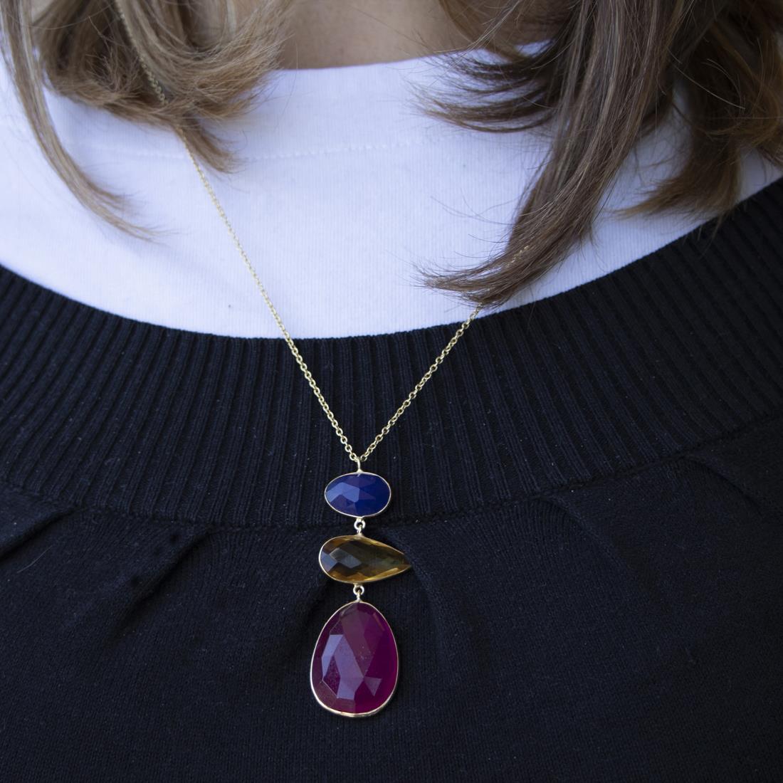 Collar en plata y piedras naturales de colores, longitud 60 cm, colgante 5,5 cm - ALFIERI & ST. JOHN 925