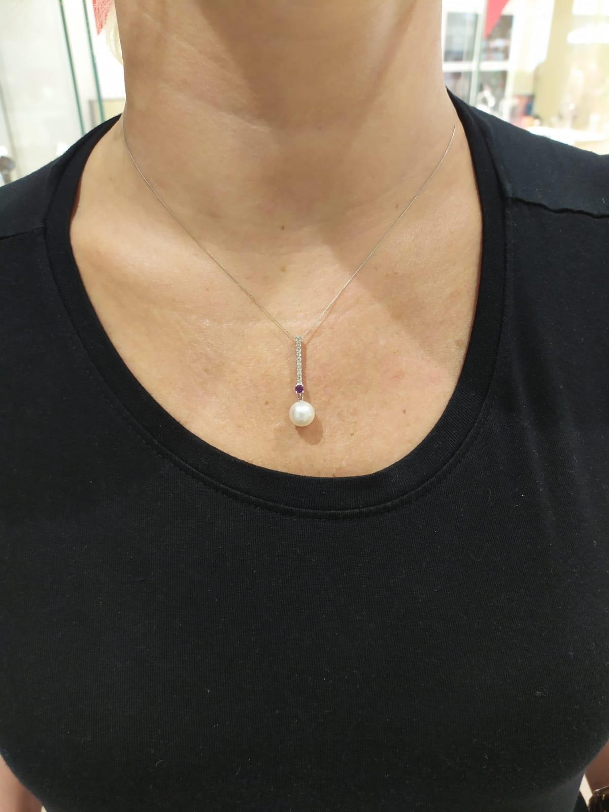 Collar mayumi oro blanco ct 0,14 perla amatista p.p 9/9,5 mm