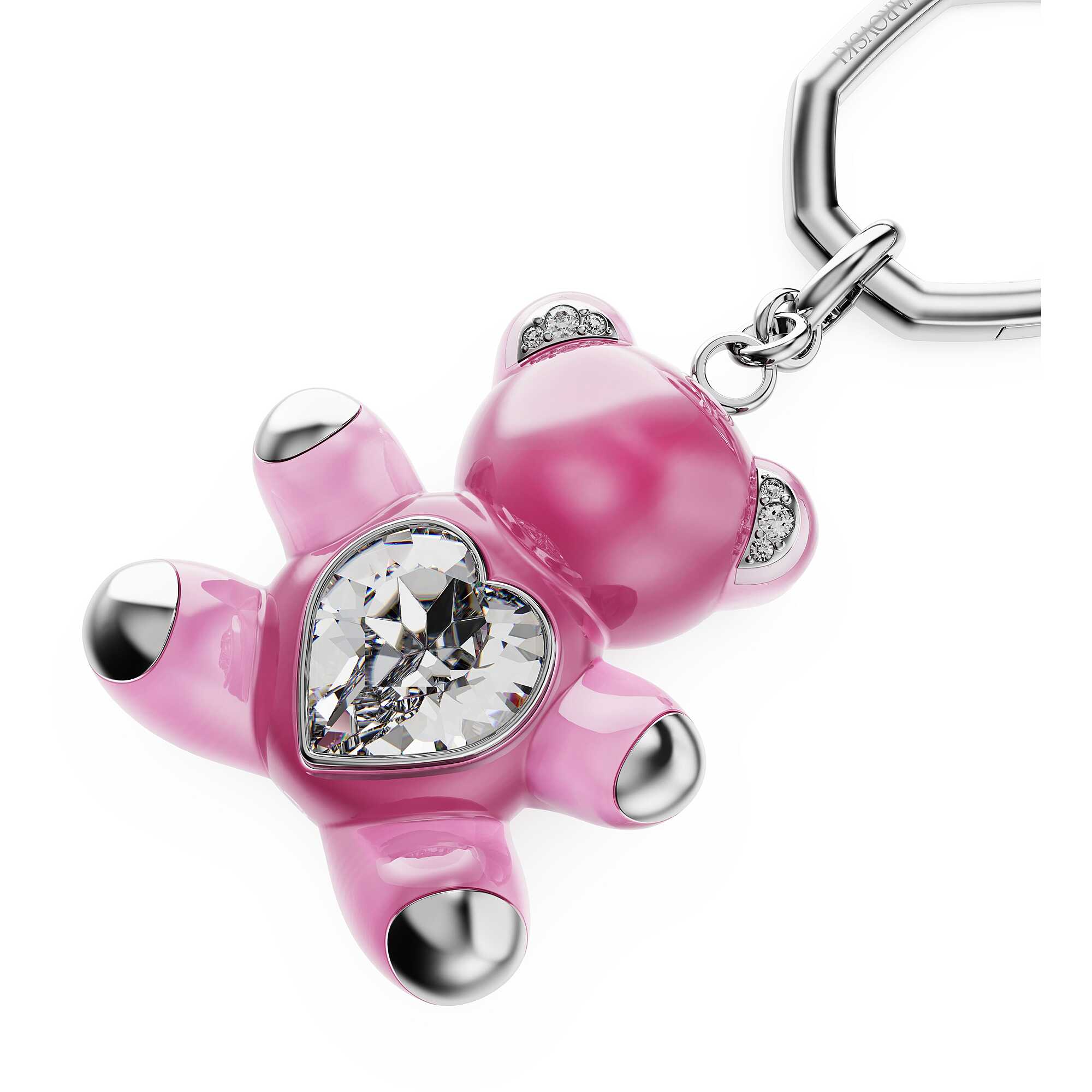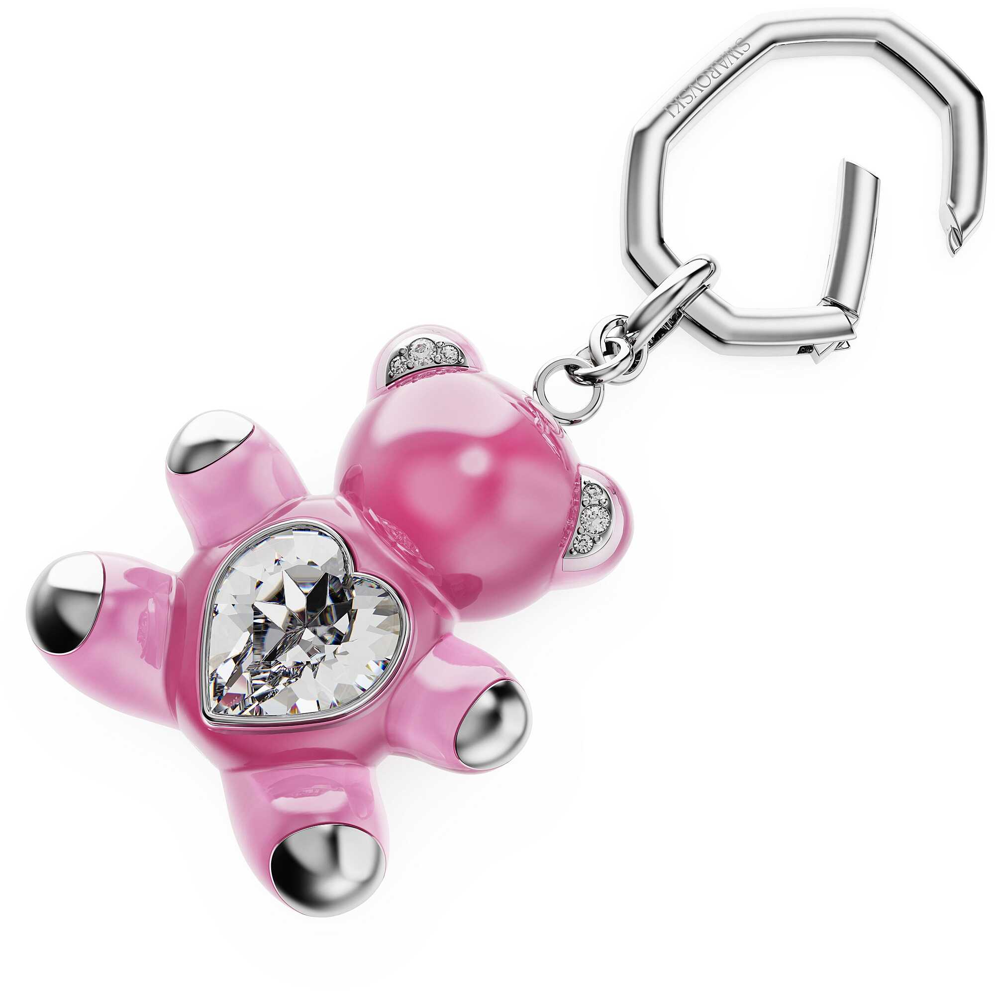 Llavero Swarovski colección Teddy con cristales rosas, chapado en rodio. Tamaño: 9,3 x 3,7 cm