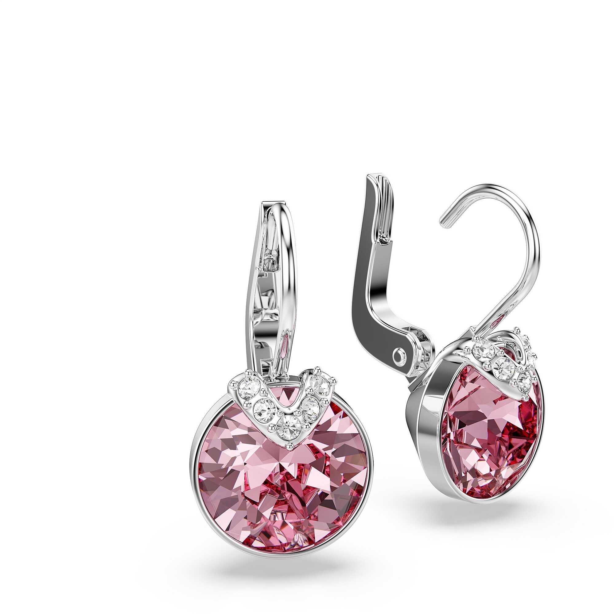 Pendientes colgantes Swarovski colección Bella con cristales rosas, chapados en rodio. Tamaño: 1,9 x 1 cm