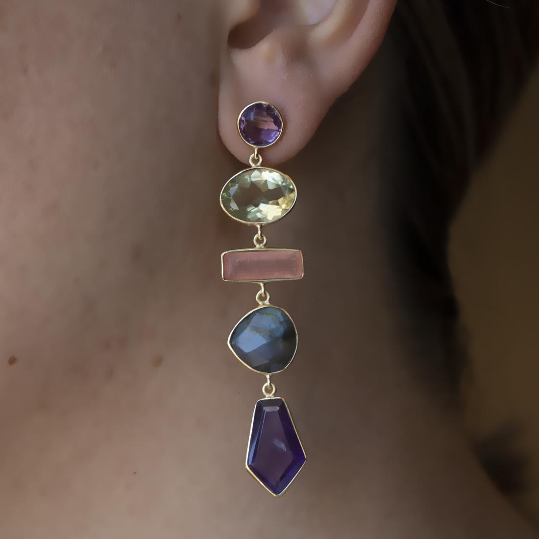 Pendientes en plata y piedras naturales de colores, longitud 7,5 cm - ALFIERI & ST. JOHN 925