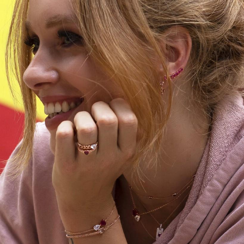 Pulsera Dancing Queen de plata y circonitas blancas y rojas de 19cm - CUORI MILANO